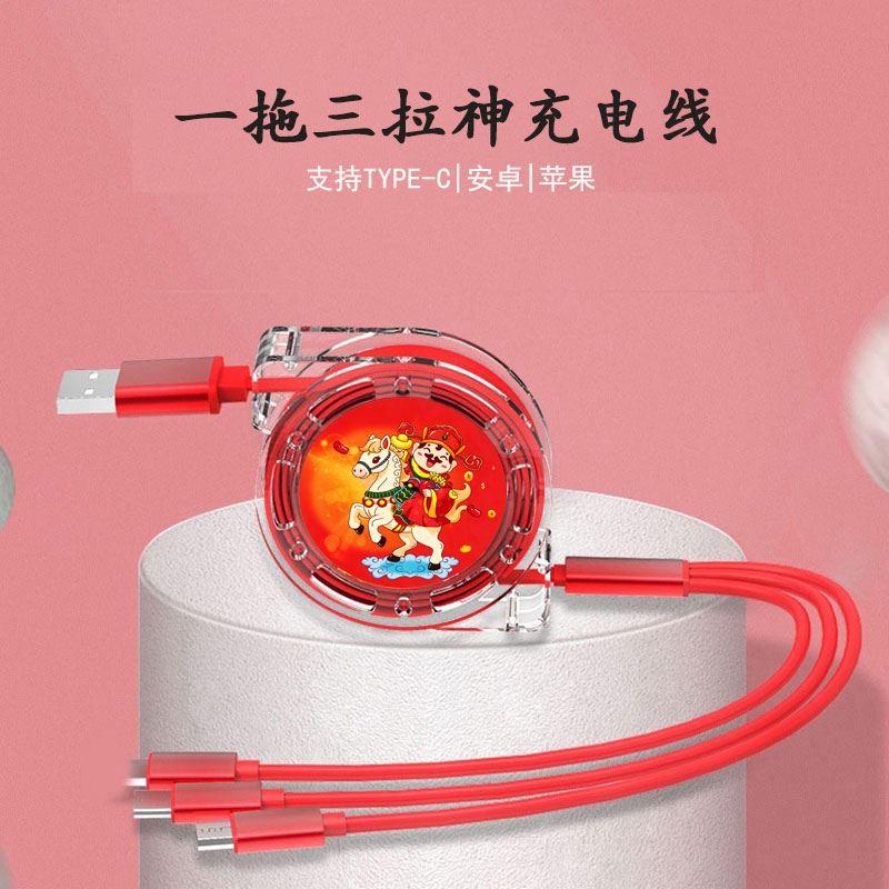 财滚滚一拖三拉伸数据线