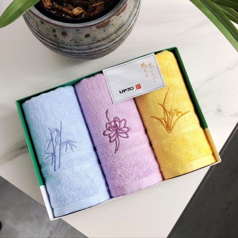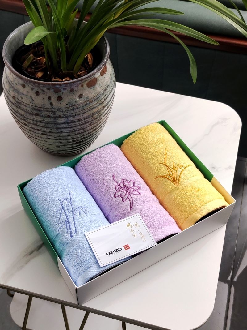 型号: XGF-003 产品内容 竹纤维小国风大毛巾×3 规格:92克每条 34*72CM 成份:起圈部竹纤维 基部棉 外盒:29CM*24CM*5.8CM 精选竹纤维材质 结合国风刺绣 优质好礼