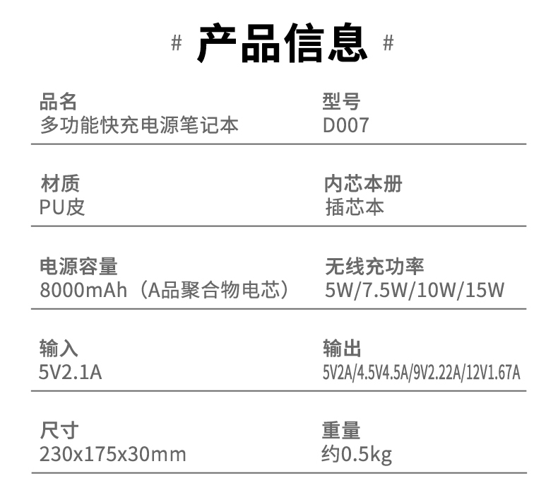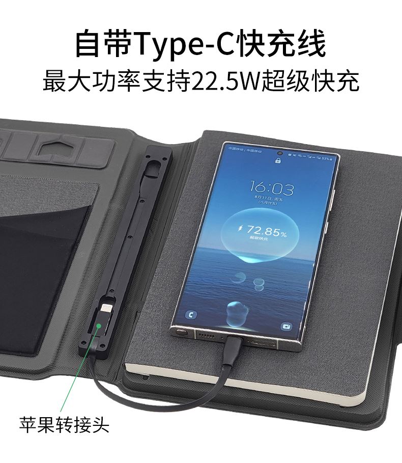 内置8000毫安移动电源,15W(Max)无线充,有线充输出的功率可高达15W,充电速度更快。苹果转接头、自带Type-C输入输出线,充电更便携。