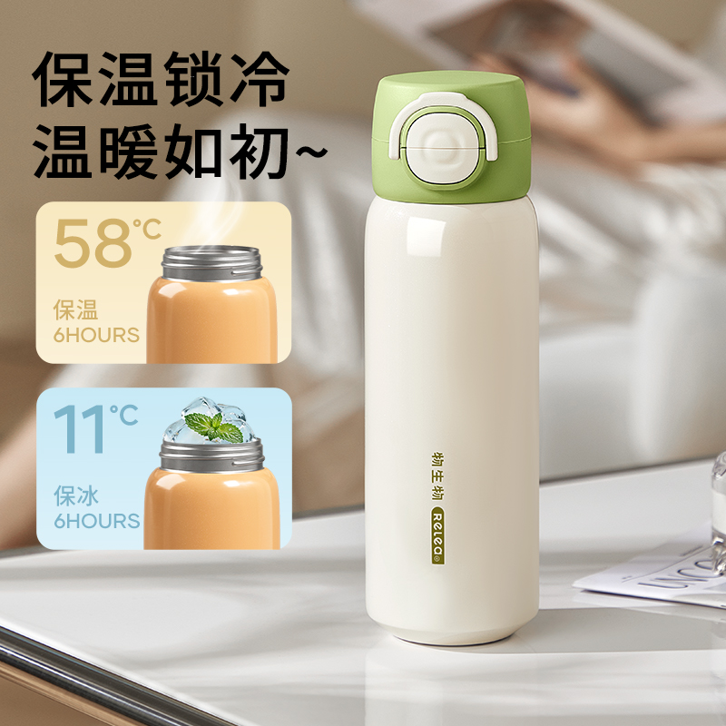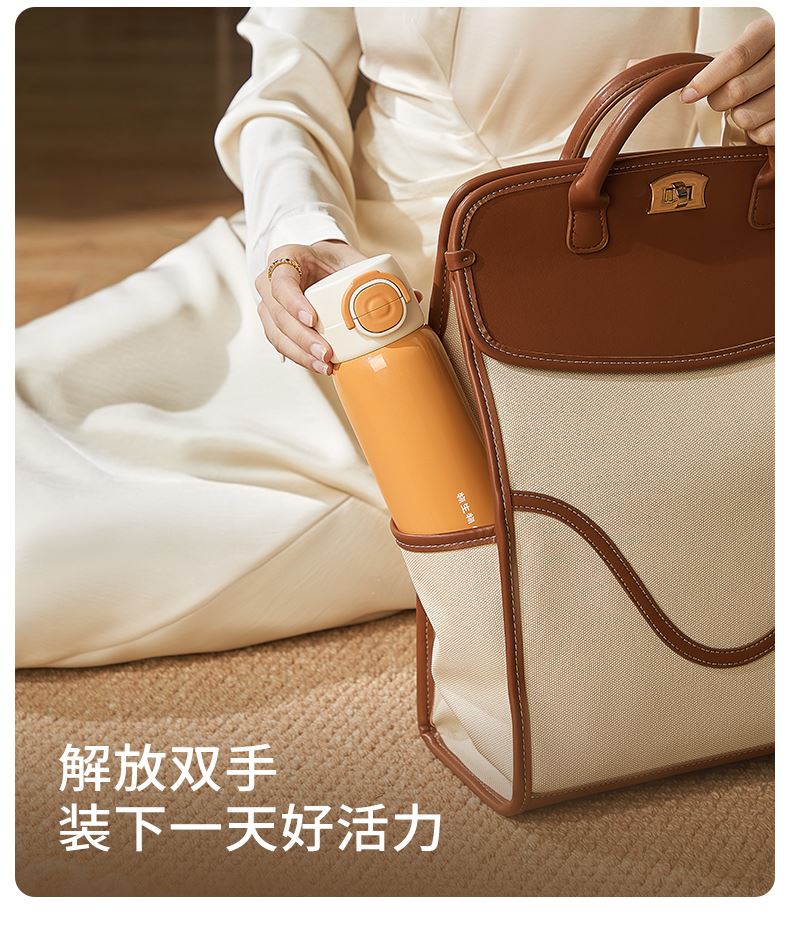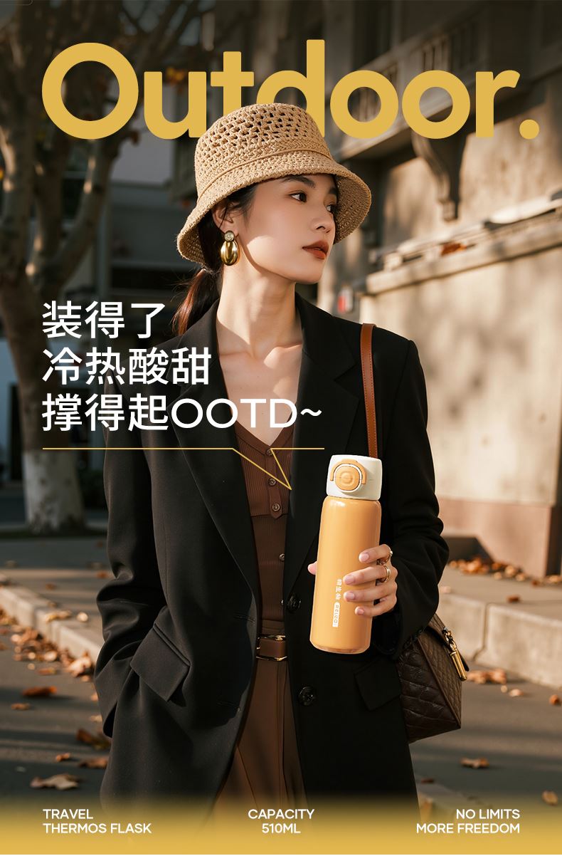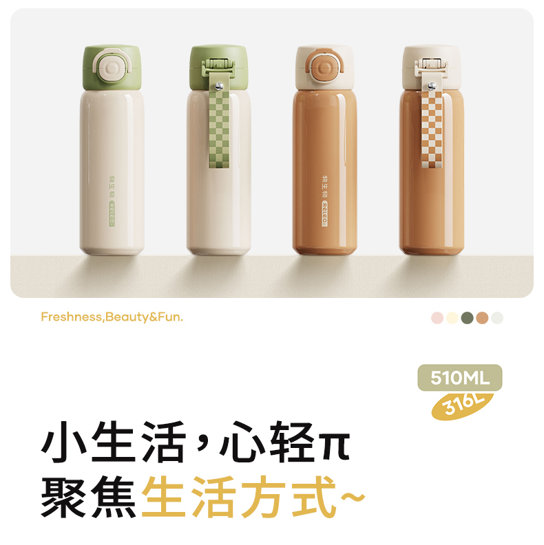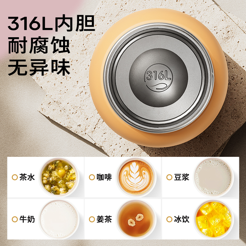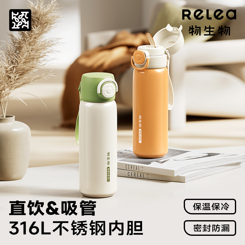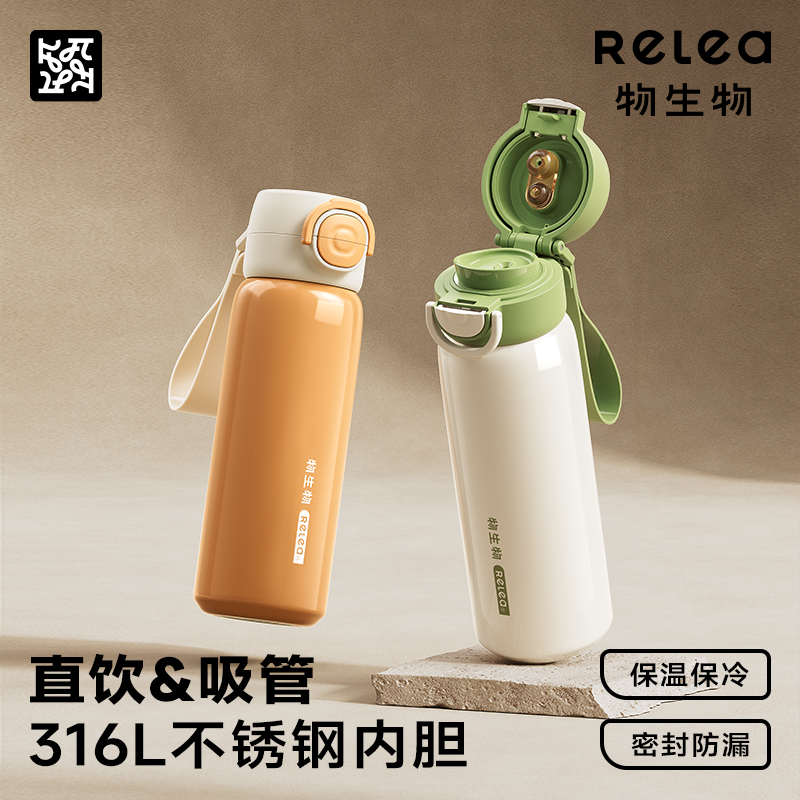 型号:JV012548-0510 颜色:焦糖落日橘 青柠奶油绿 材质:316不锈钢 容量:510ml 1:直饮&吸管两种品饮方式 2:密封防漏出行更安心 3:全身可拆清洗