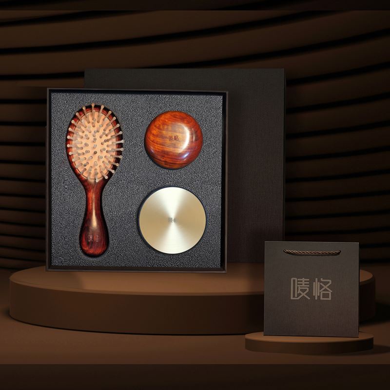 【唛恪】轻奢礼品:羊角红木气垫梳+按摩梳+香熏炉二件