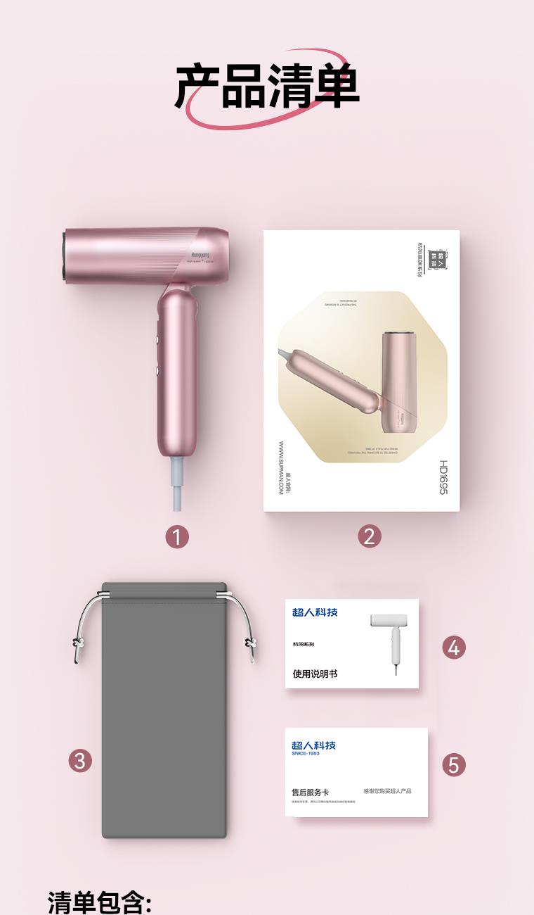 超人高速负离子便携可折叠小巧型电吹风HD1695