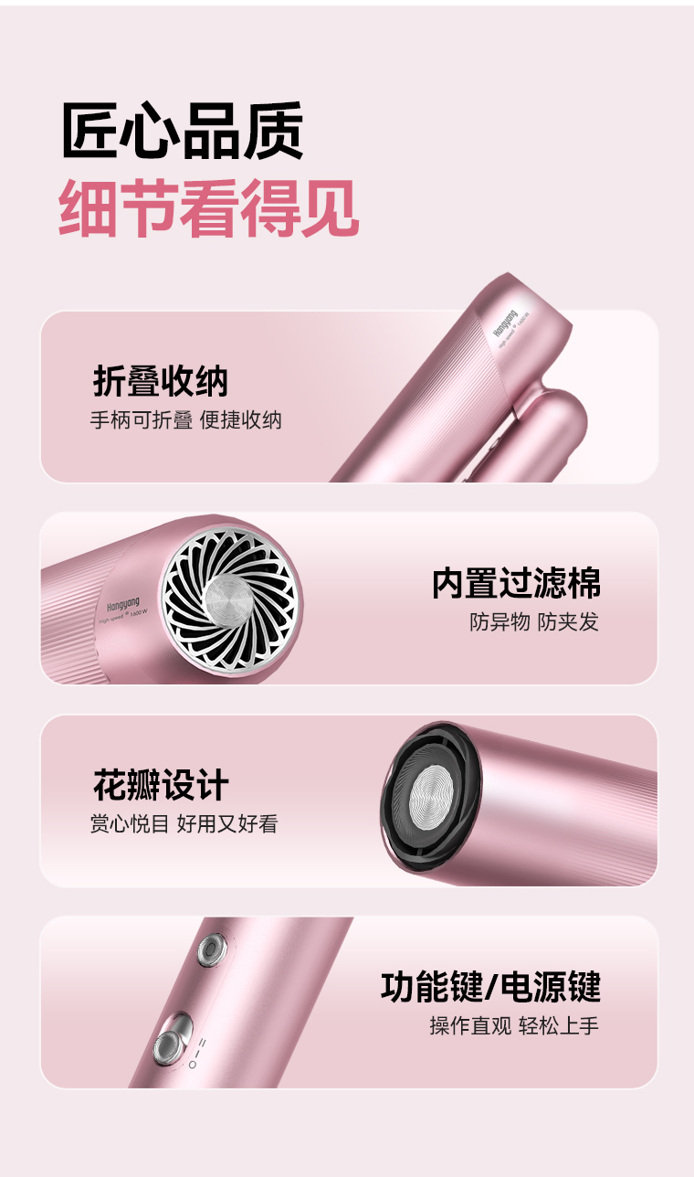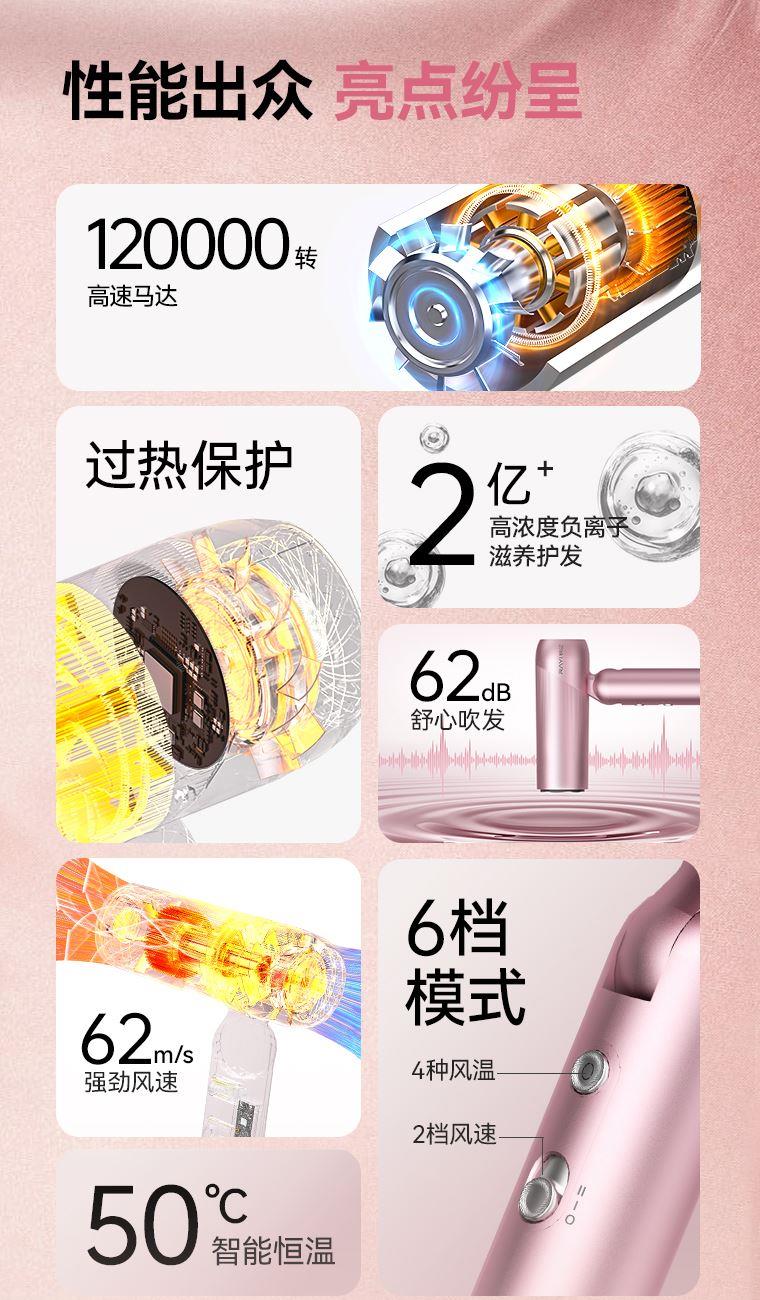 2亿级负离子技术护发功能,深U型层叠发热丝