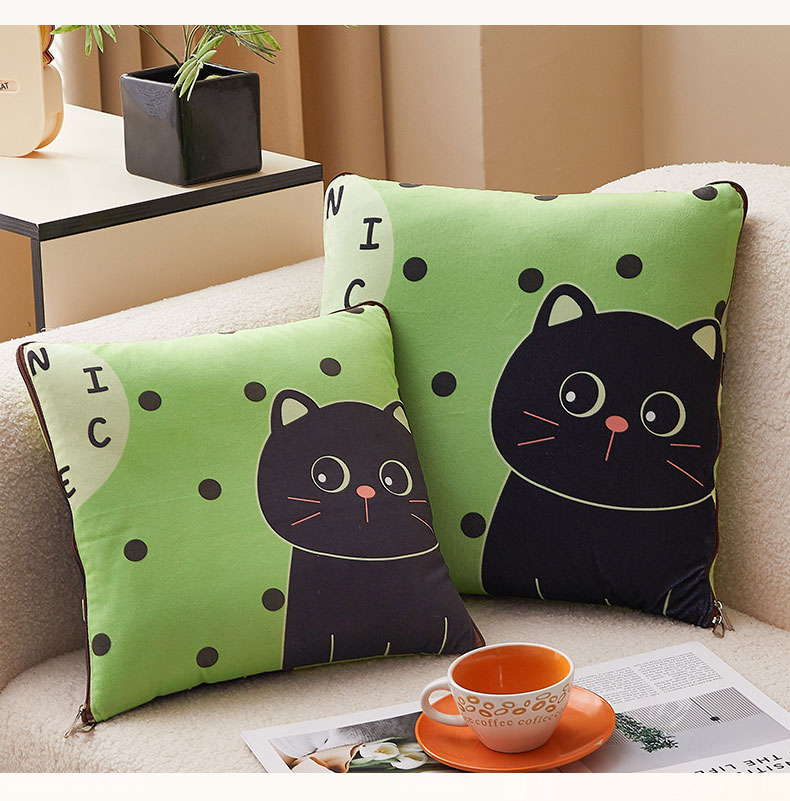 花色:绿猫 规格:折叠37*37cm展开120*160cm 面料:水晶绒+双面法莱绒(聚酯纤维) 双面高克重法莱绒面料,绒毛细密,一触即暖;印花部分水晶绒面料,保暖透气不闷汗。植入导电丝,减少干燥天气带来的静电烦恼;新一代活性印染,色牢度高,不易褪色,不惧机洗水洗;细密卷边工艺,针脚紧密,耐磨耐用;双向拉链设计,顺滑易拉,经久耐用。