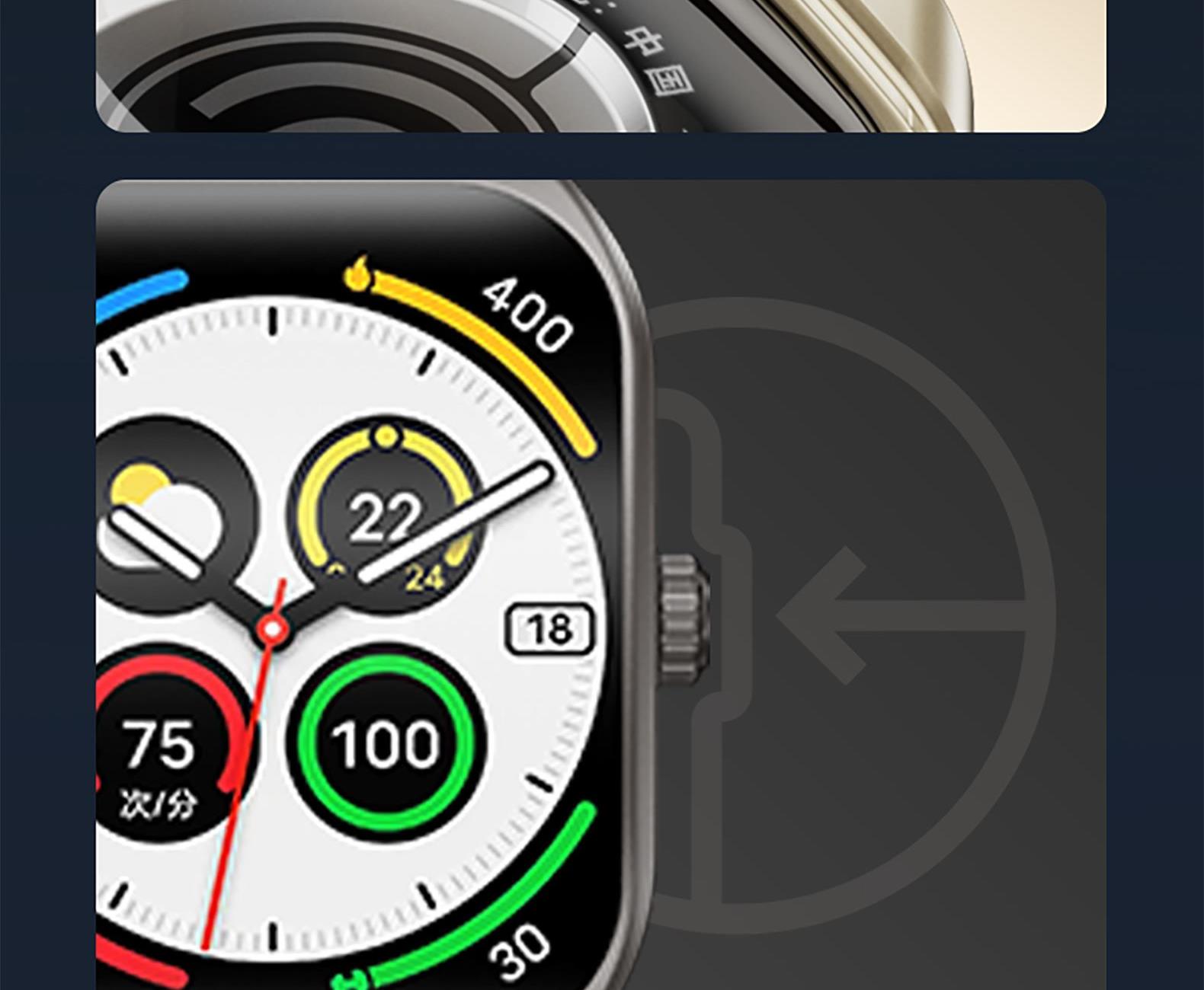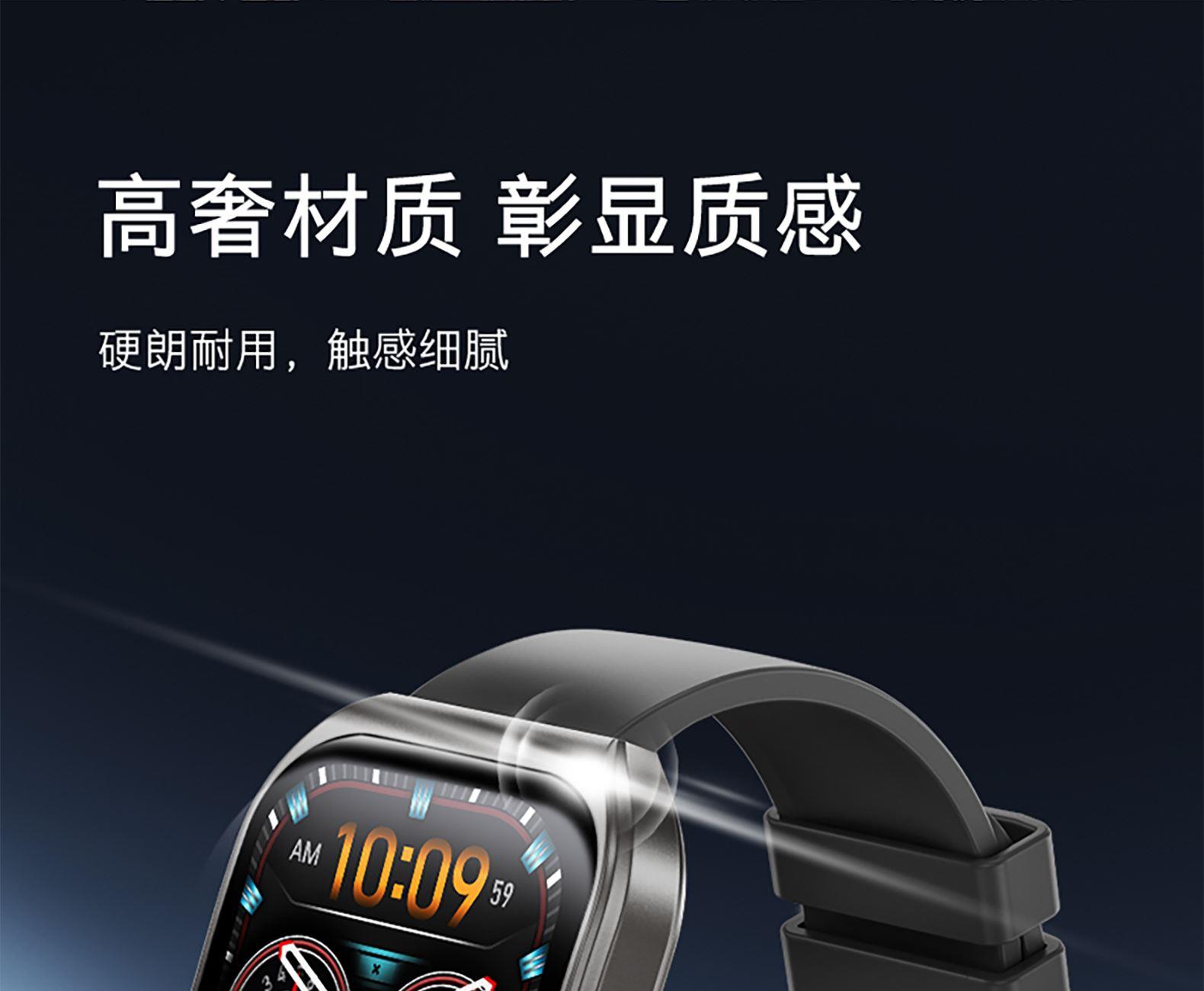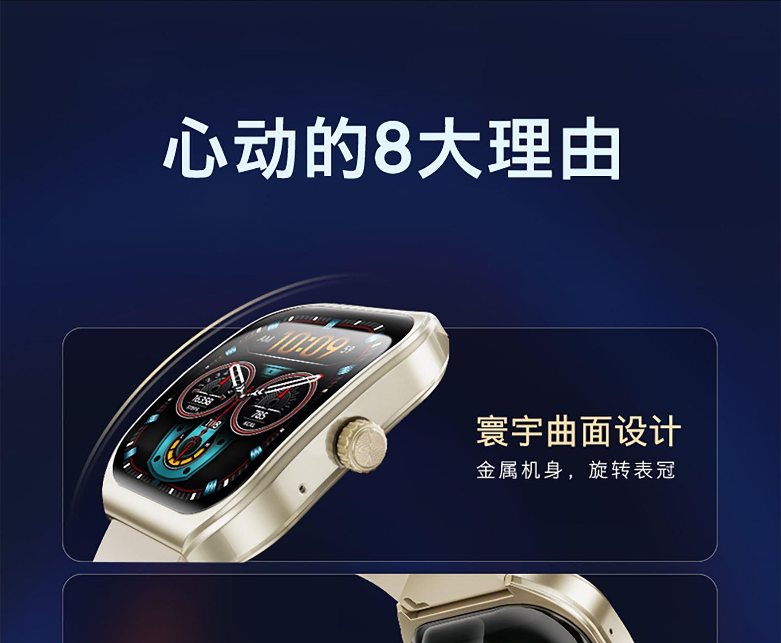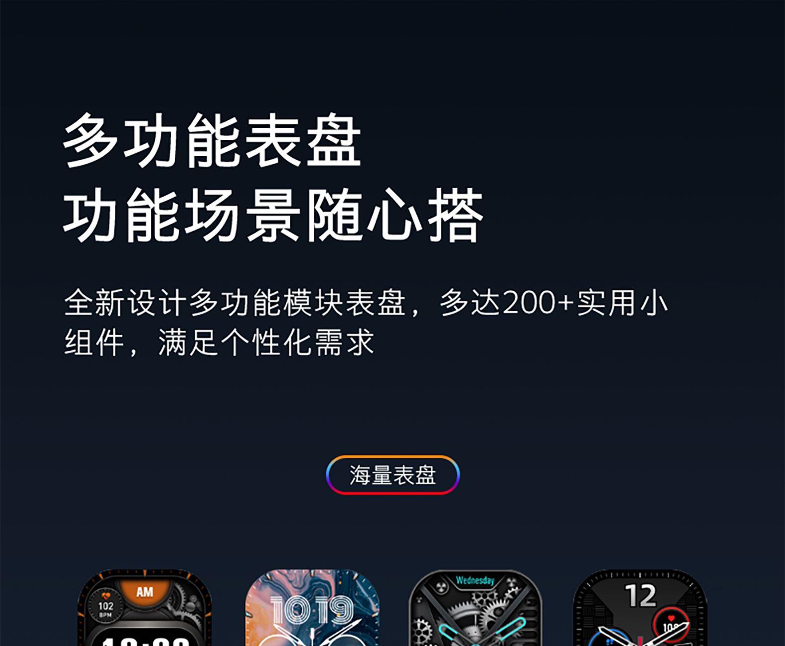 2.01寸弧面屏,240*296分辨率、电池300mAh、健康提醒、心率/血氧监测、蓝牙通话、蓝牙音乐、睡眠监测、来电接听、短信提醒、社交APP消息提醒(支持微信,QQ)、闹钟提醒、久坐提醒、20+种运动、翻腕亮屏、寻找手环、远程拍照、勿扰模式、表盘自定义、云端后台海量表盘、本地语音功能控制、chat GPT、AI表盘(根据描述,生成表盘图片)、支付宝、NFC、股票、常用联系人、音乐控制、天气等;