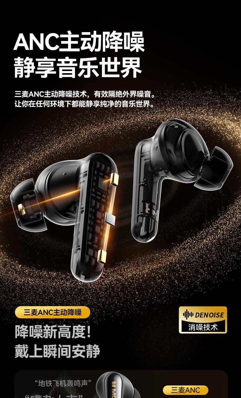 三麦ANC主动降噪技术,有效隔绝外界噪音。