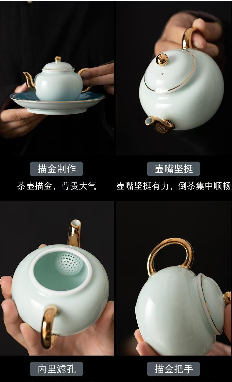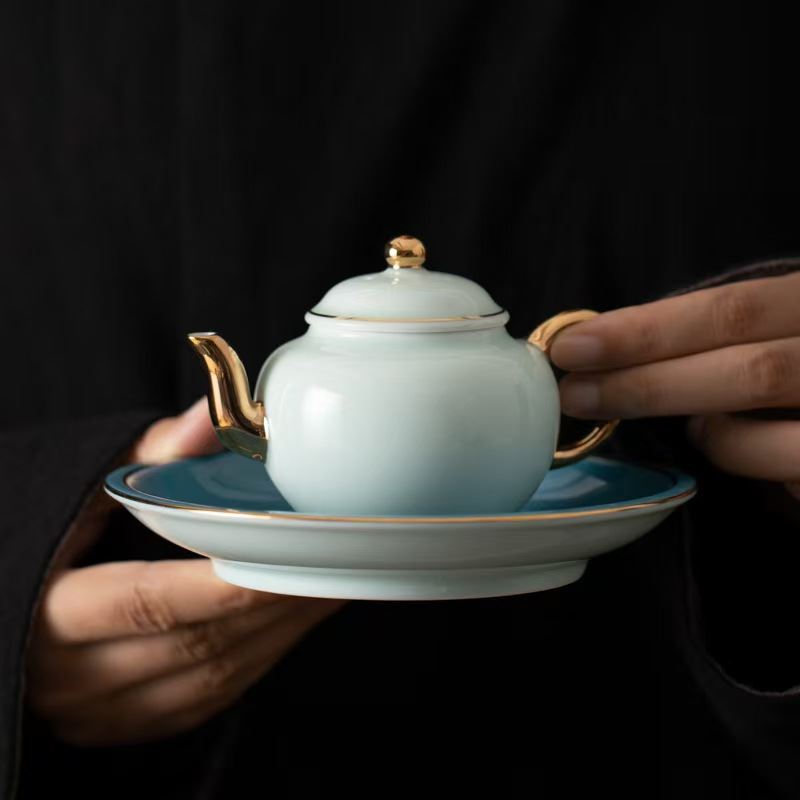 鹏翼青山玉西施壶描金茶具