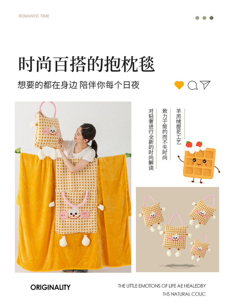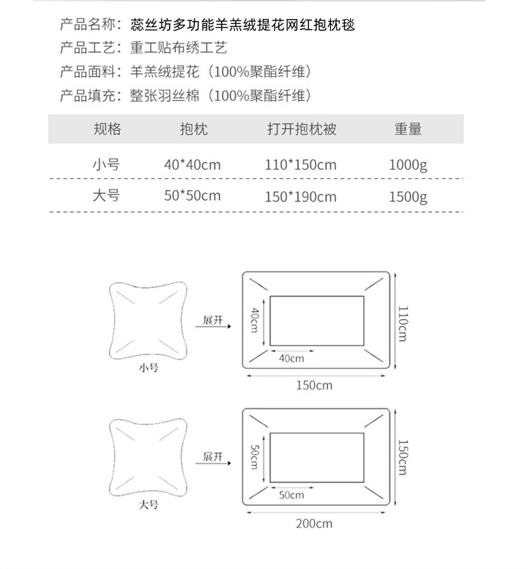 蕊丝坊家纺新款多功能羊羔绒提花网红抱枕毯 蕊丝坊家纺新款多功能羊羔绒提花网红抱枕毯
