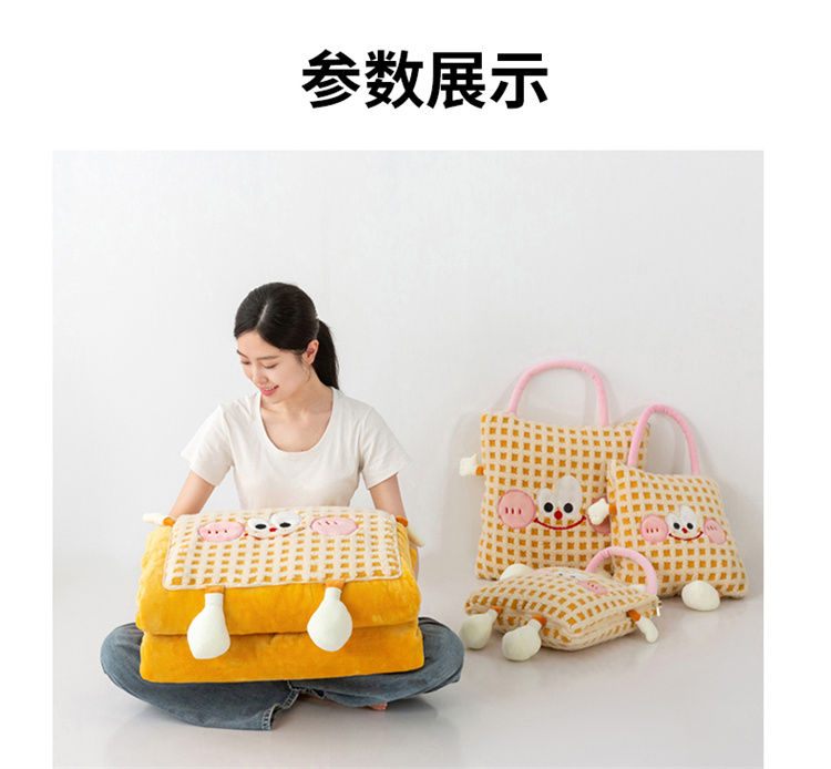 蕊丝坊家纺新款多功能羊羔绒提花网红抱枕毯 礼品已成功加入PPT!