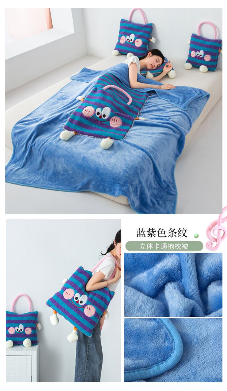 花色:橙黄/高贵黑/公主粉/湖蓝/蓝紫色条纹/玫粉色条纹/玫红色/枚绿色条纹/松石绿 规格:折叠40*40cm展开110*150cm 面料:羊羔绒提花(聚酯纤维) 填充:整张羽丝棉(聚酯纤维) 多功能羊羔绒提花休闲抱枕毯重磅推出!外套采用羊羔绒提花工艺+贴布刺绣+活体手脚,集众多优势工艺于一身,给您带来全新的产品享受!羊羔绒提花面料色彩艳丽,持久光鲜!不褪色!毯子全部采用400多克每平方双面金貂绒面料,柔软质感,吸湿透气, 舒适亲肤,四季好用!所有的毯子都采用包边工艺,支持机洗、水洗!