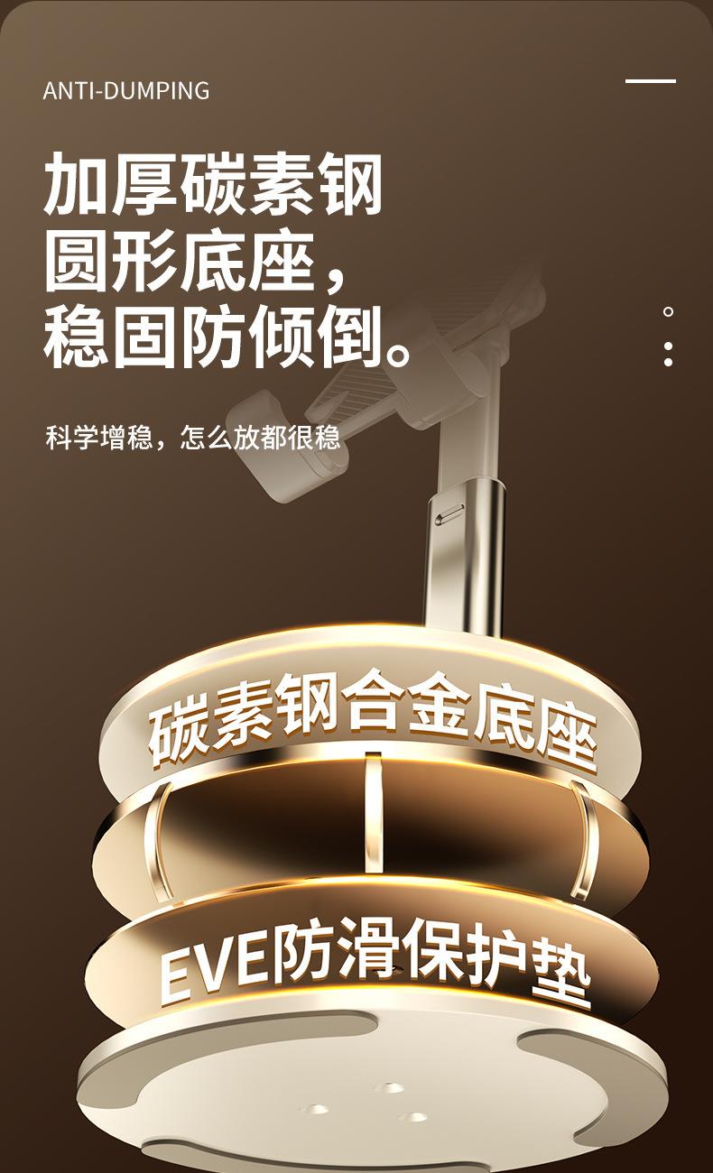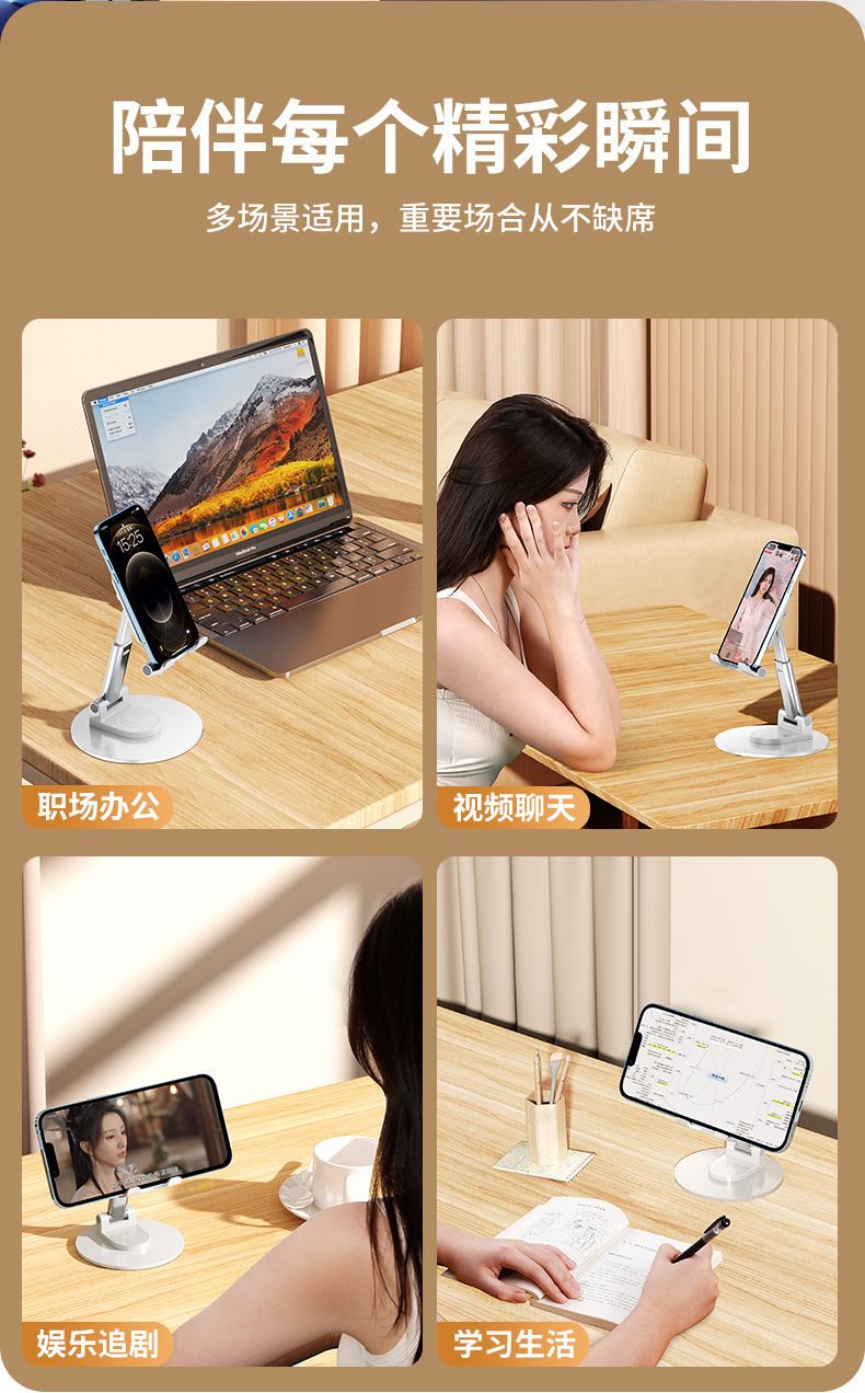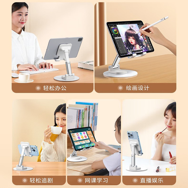 产品规格:9.8*12.5*16.8cm 材 质:ABS+铝合金+硅胶+单轴旋转底座 颜 色:白色 黑色 粉色 产品净重:182g 适用机型:手机 平板电脑