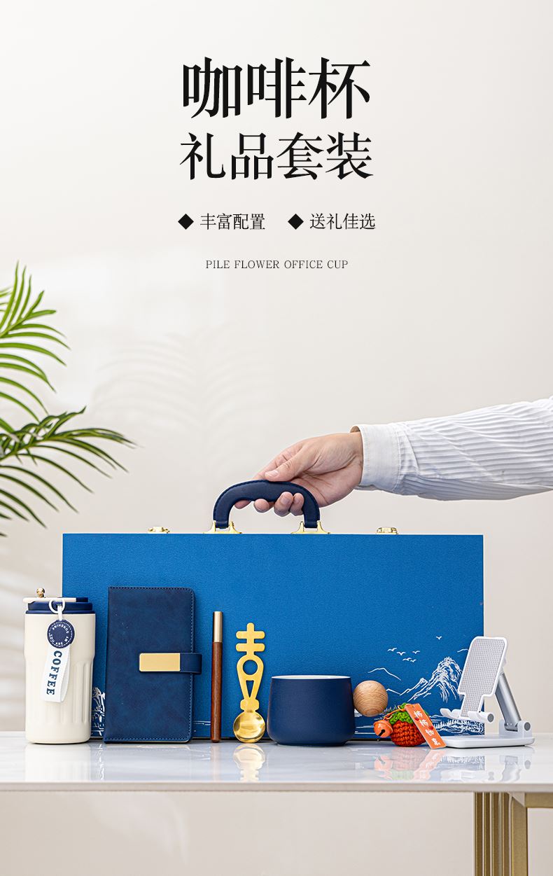 咖啡杯:13.5*7.4厘米340ml 保温咖啡杯:6.7*15厘米410m 礼盒 :48*12*23厘米 智能保温杯长时间保温保冷,陶瓷高温烧制,无铅铬,品质保证,商务实用,甄选好礼。