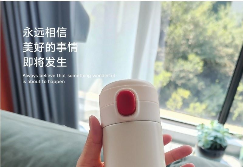 型号: BWB-01 材质: 内胆材质304 杯盖PP 容量: 420ML 外盒: 21×7×7cm 高颜值 祝福主题融入 靓丽外观设计