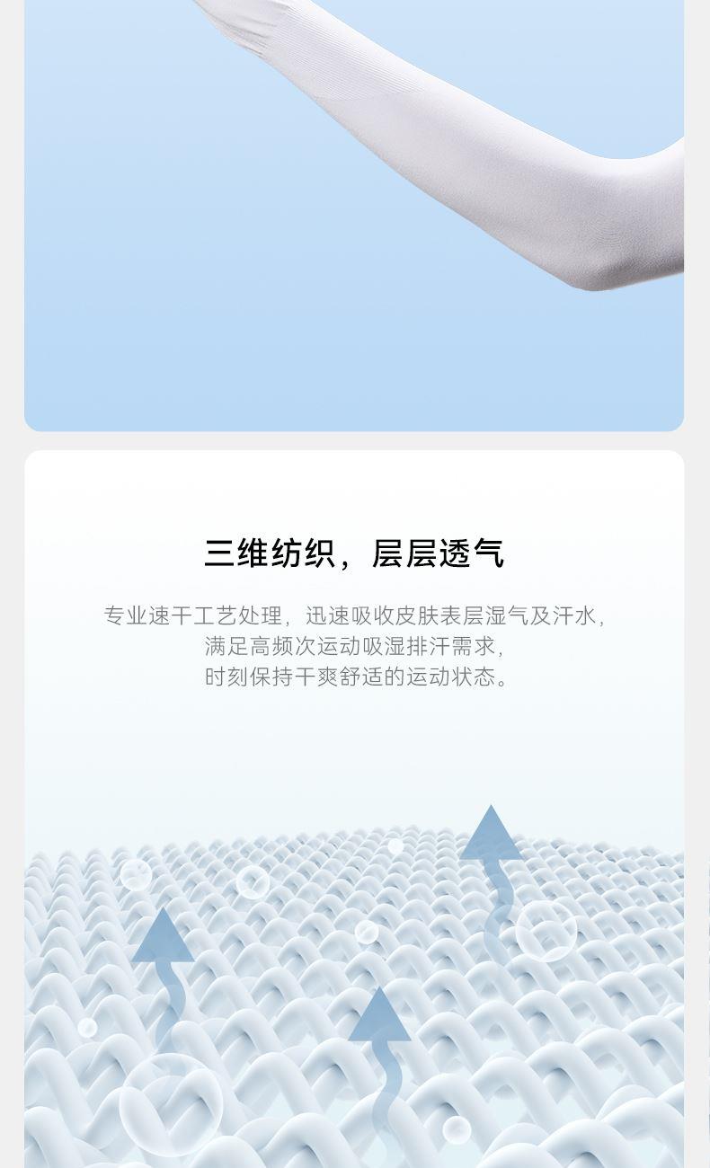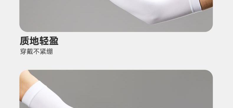 材质:凉感纱 尺寸:39*8*10cm 颜色:白色 适用:日常休闲/旅游度假/徒步 1.冰丝防晒面料UPF50+防晒,有效隔绝紫外线 2.保持肌肤冰凉干爽,高效隔热 3.轻薄透气,舒适亲肤,吸汗速干 4.紧致包裹,贴合手臂曲线