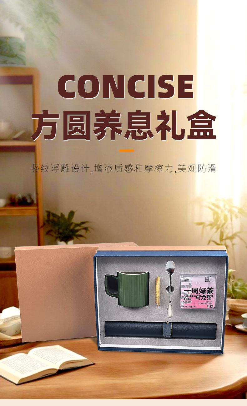 方圆养息马克杯桌垫办公套装入职礼盒员工礼物