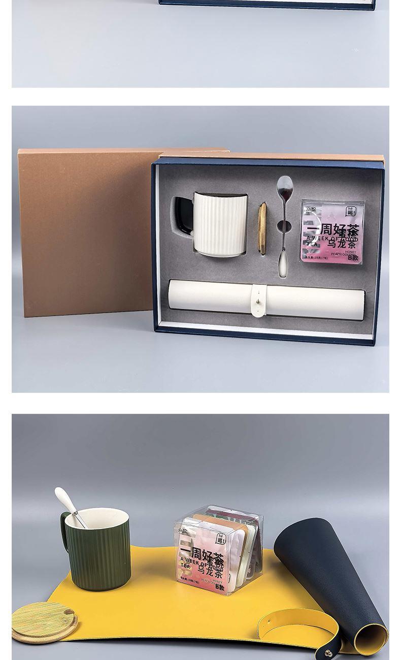 于职场方圆之间,寻一方滋养身心的自在天地。这份办公休憩套装,内含三样充满温度的物件,为您构建一个专属的松弛空间,这不仅是三件物品,更是一种张弛有度的生活哲学。“方”是工作的秩序,“圆”是身心的调和。一套「方圆养息」,助您在高效拼搏之余,懂得适时休憩,于方圆之内,涵养从容不息的生命力。 马克杯 材质:陶瓷+木盖+勺子 容量:370ml PU皮革桌垫 尺寸:600*300mm 材质:双面PU皮 一周好茶 净重量:21克(3克*7包)