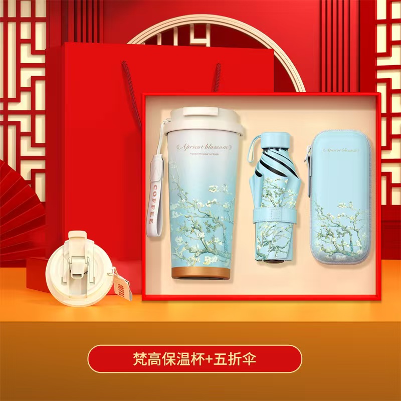 【产品配置】铃兰杯+伞 【产品型号】K-02 【产品颜色】紫薰衣草,蓝玫瑰,绿梵高,金玉兰花,黑再攀高峰 【包装尺寸】33*27*10cm