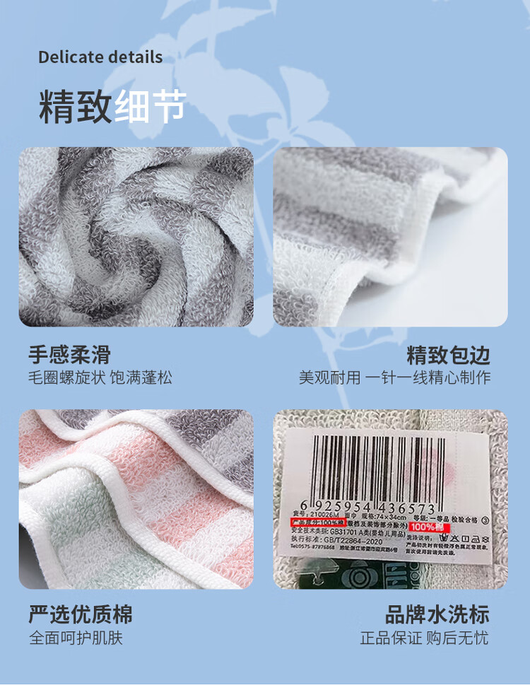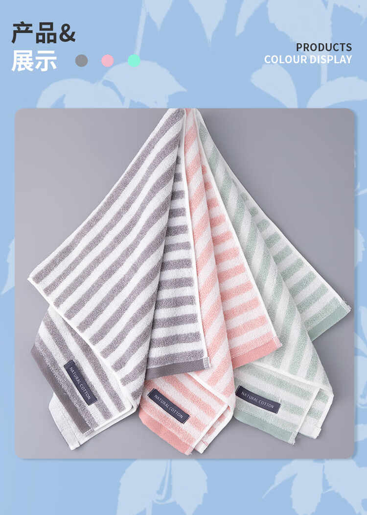 型 号:210026M(颜色随机) 组 合:3条(EVA袋装) 材 质:棉 规 格:74*33cm 克 重:100g 颜 色:灰、绿、粉、棕