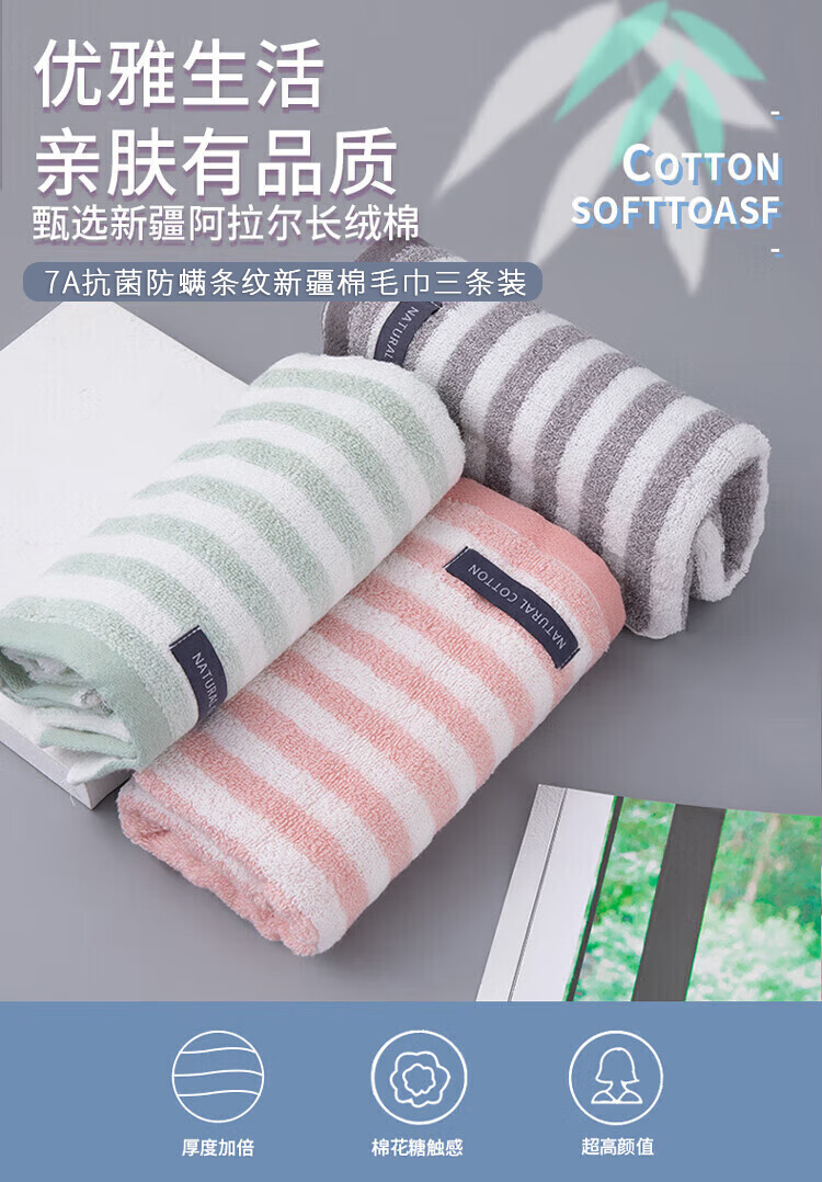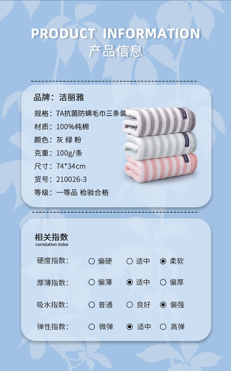 洁丽雅(Grace)7A防螨毛巾三条装20230065