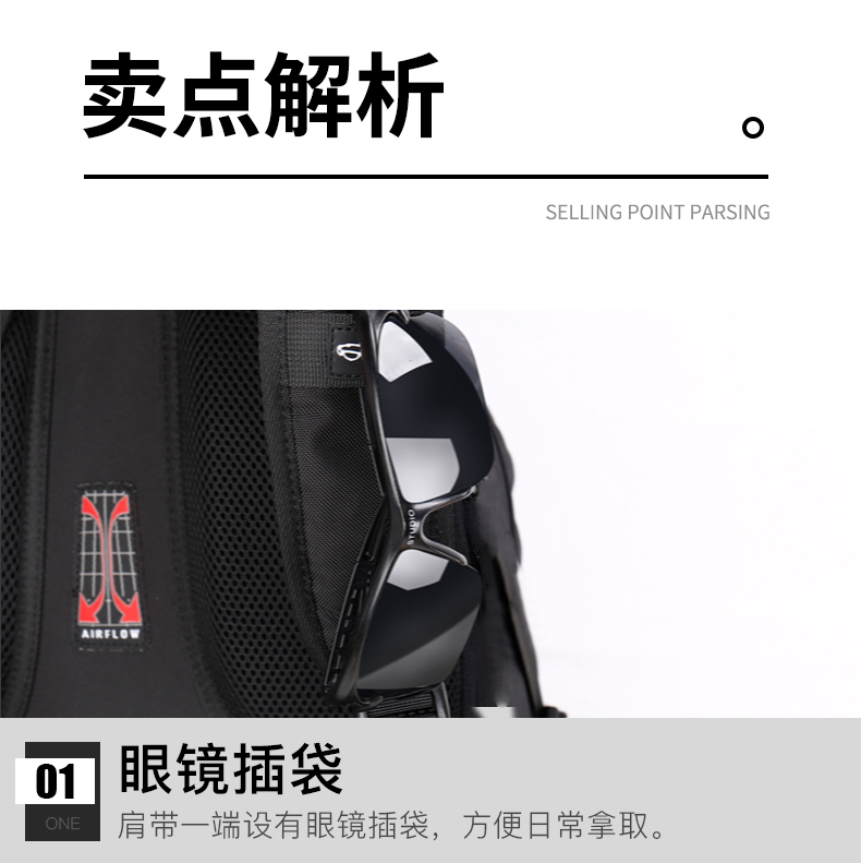 3.加宽肩带设计减压减负,肩带设有眼镜插袋方便日常所需.