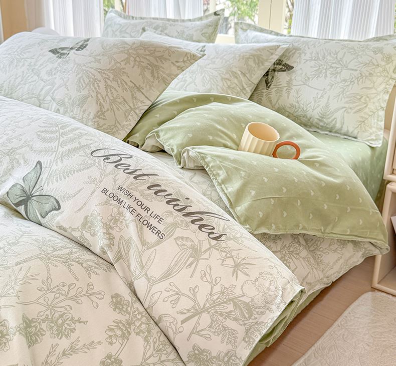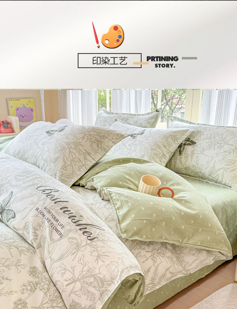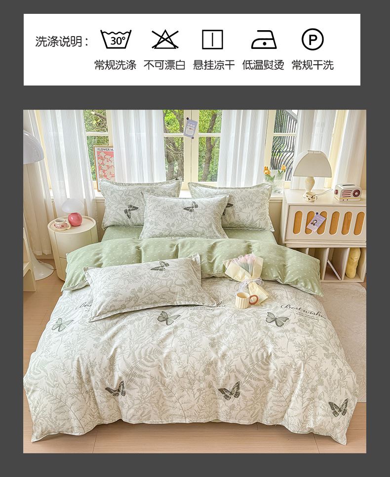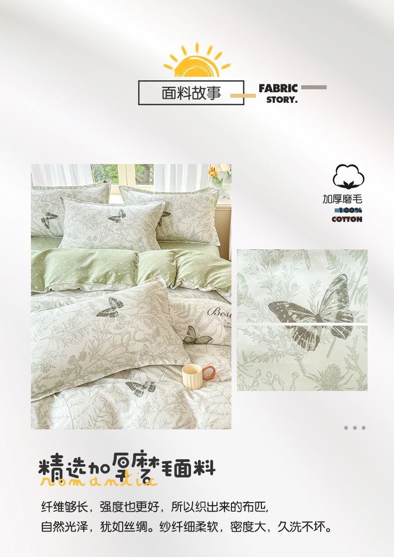 被套:200×230cm 床单:230×230cm 枕套:48×74cm 适用:1.5M-1.8M床 面料:磨绒(聚酯纤维) 印染工艺:环保印花 包装:精美手提盒 甄选柔肤棉面料,质地柔软 细腻,搭配时尙印花点缀柔和色彩的选择 手感舒适亲肤细腻 ,一起感受美好邂逅。