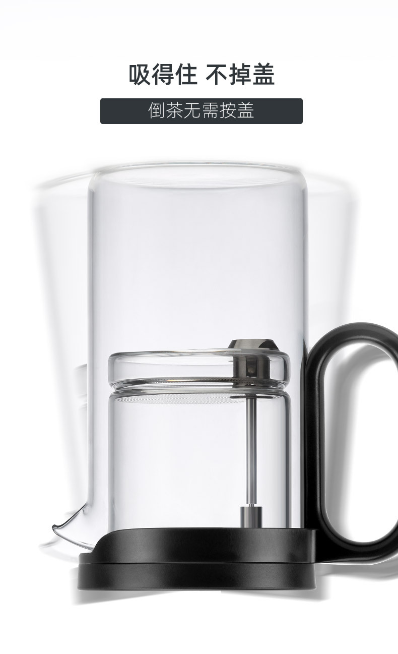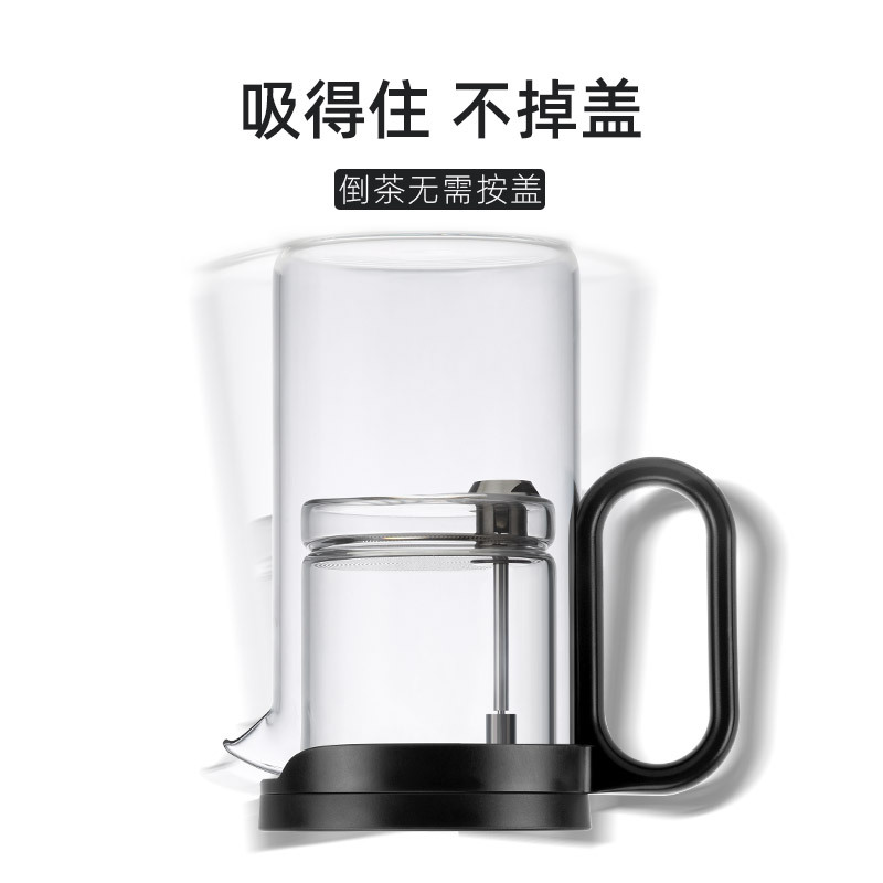 黑色-700mL 磁吸定位,自动吸附上盖 磁吸按钮开盖,自动回弹 人体工程学把手 一按出水,浓淡可控 磨砂上盖,彰显质感 鹰嘴出水口,断水利落 食品级304不锈钢内盖 耐瞬间温差170度