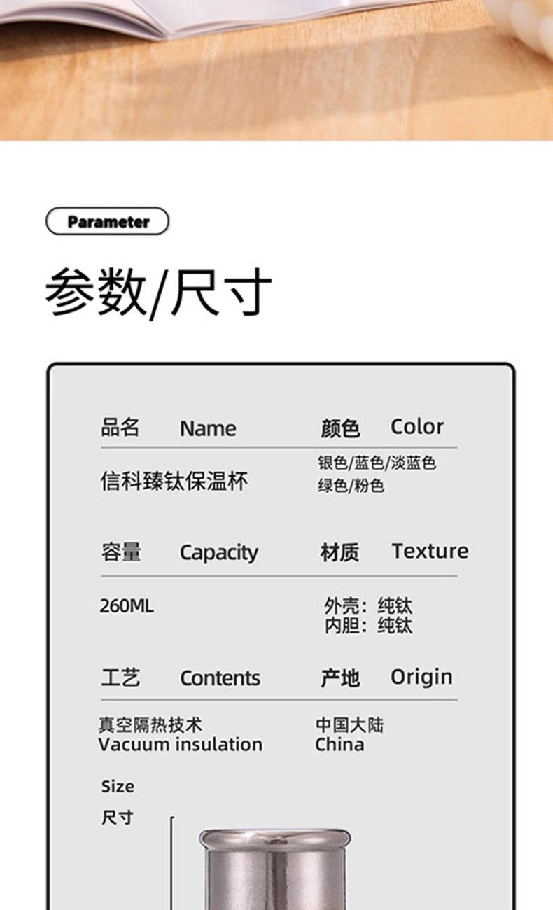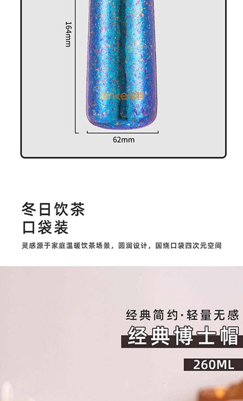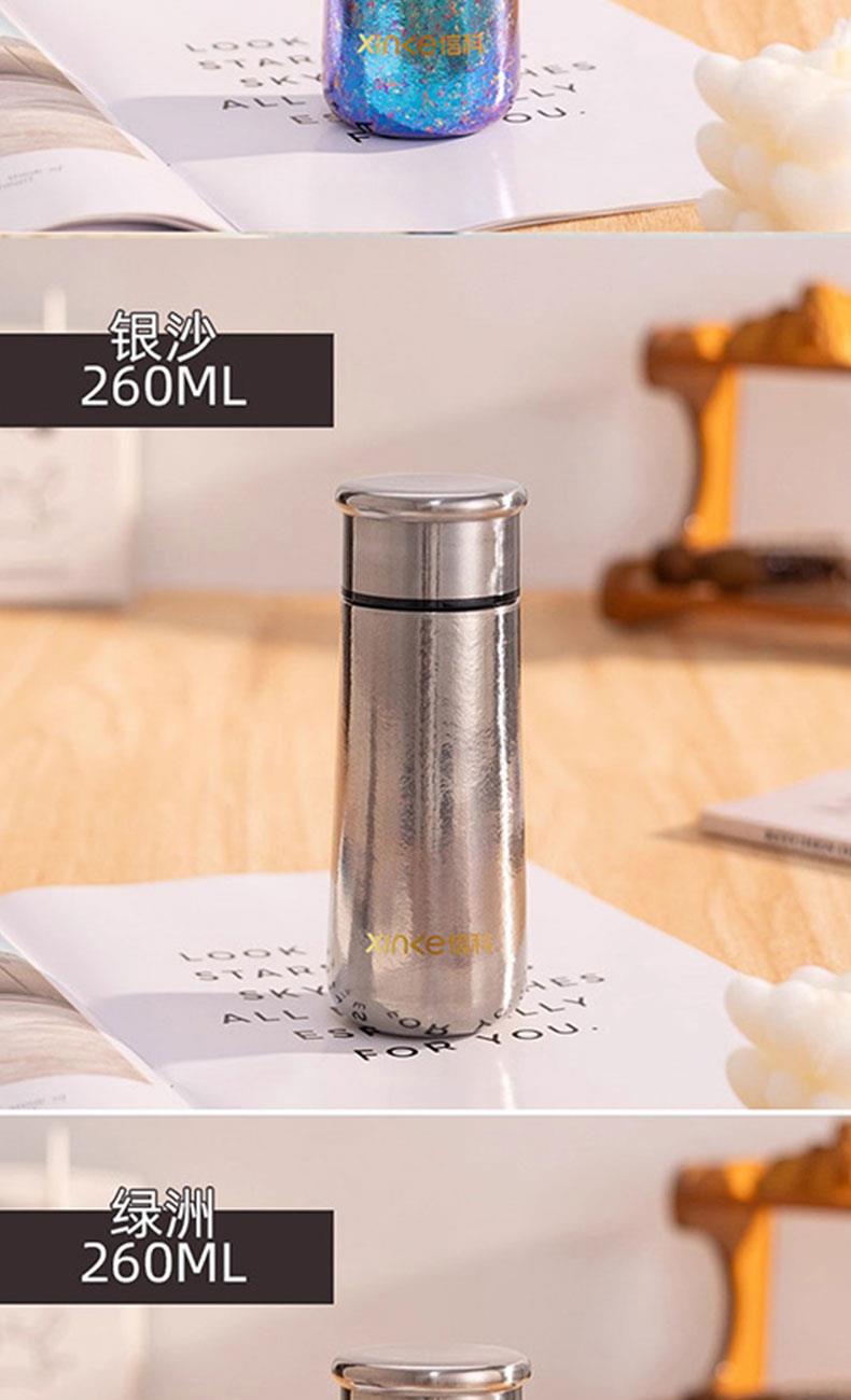 单个尺寸:16.4x6.2cm 外装尺寸:7*11*21.6cm 产品容量:260ml 净重:153.3g 颜色:银色、蓝色、淡蓝色、绿色、粉色