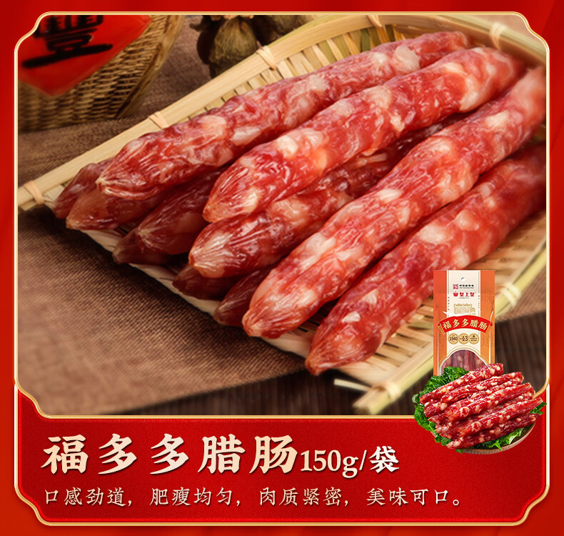 产地:广东 特产品类:广式腊肠 口味:原味 食用方法:烹饪食用 加工工艺:烘干 保质期:120天 总净含量:1000g 内配:三鲜腊肠200g*2 福多多腊肠150g*1 农家柴火腊肉200g*1 香荔腊肠250g*1 广式腊味礼盒*1