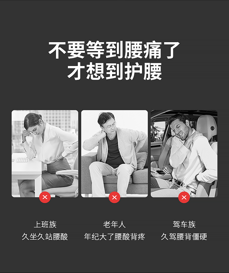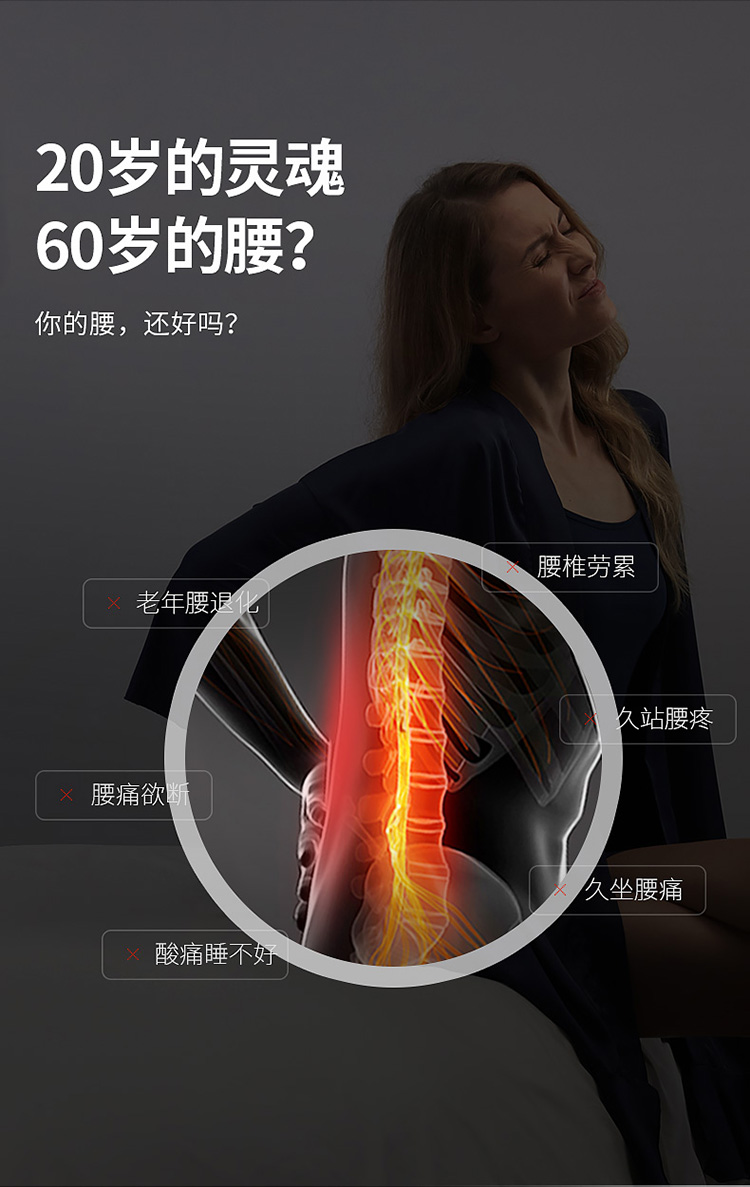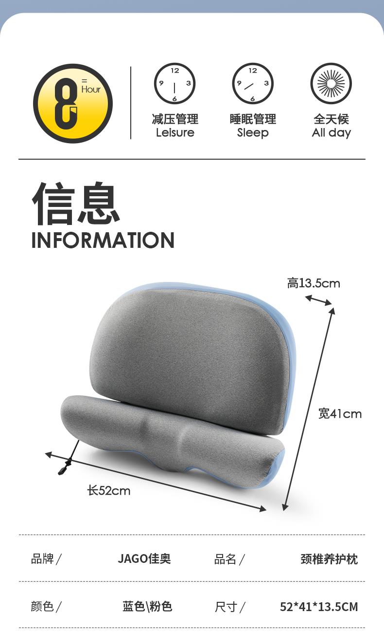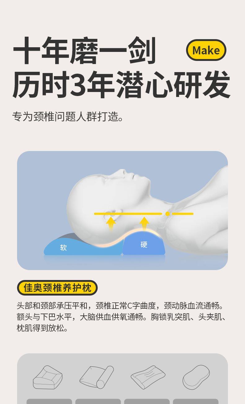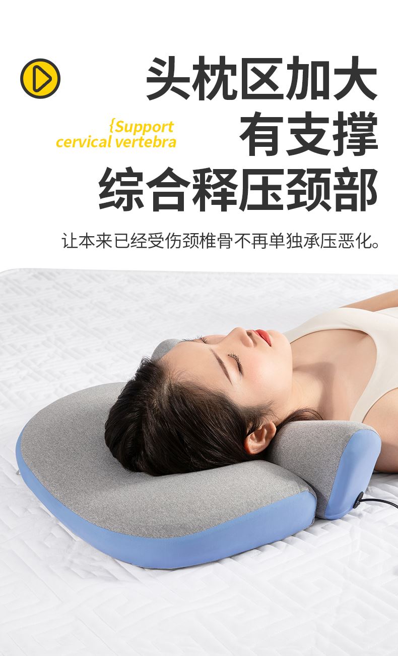 颈椎养护枕:①人体工学设计 软硬分区 ②凹型包裹 仰睡 侧睡都舒适 ③草本力量+艾绒加成 小白鲸腰垫:①三档智能温控, 暖波护理腰部, 放松僵硬肌肉, 整夜养护软垫; ②慢回弹记忆棉, 偏软, 躺睡不硌腰; ③贴合腰椎弧度, 填补腰间空隙