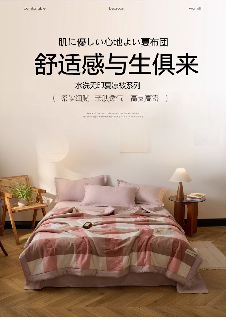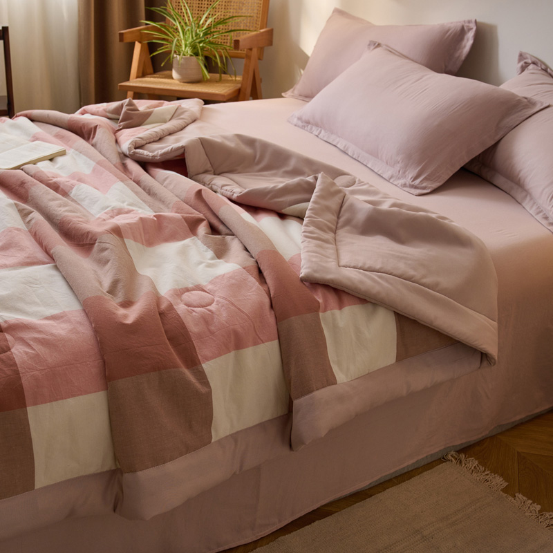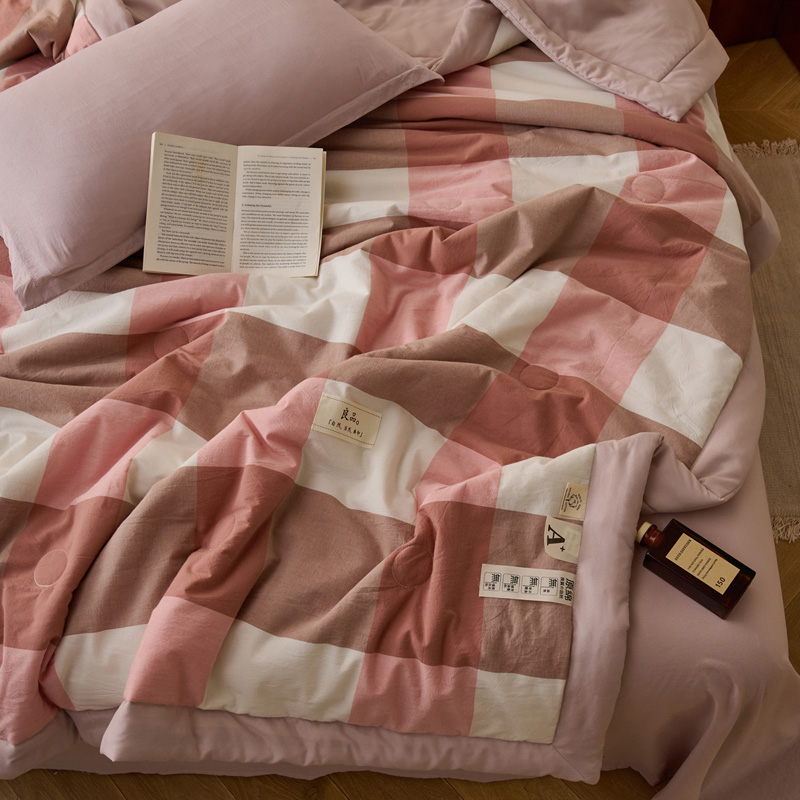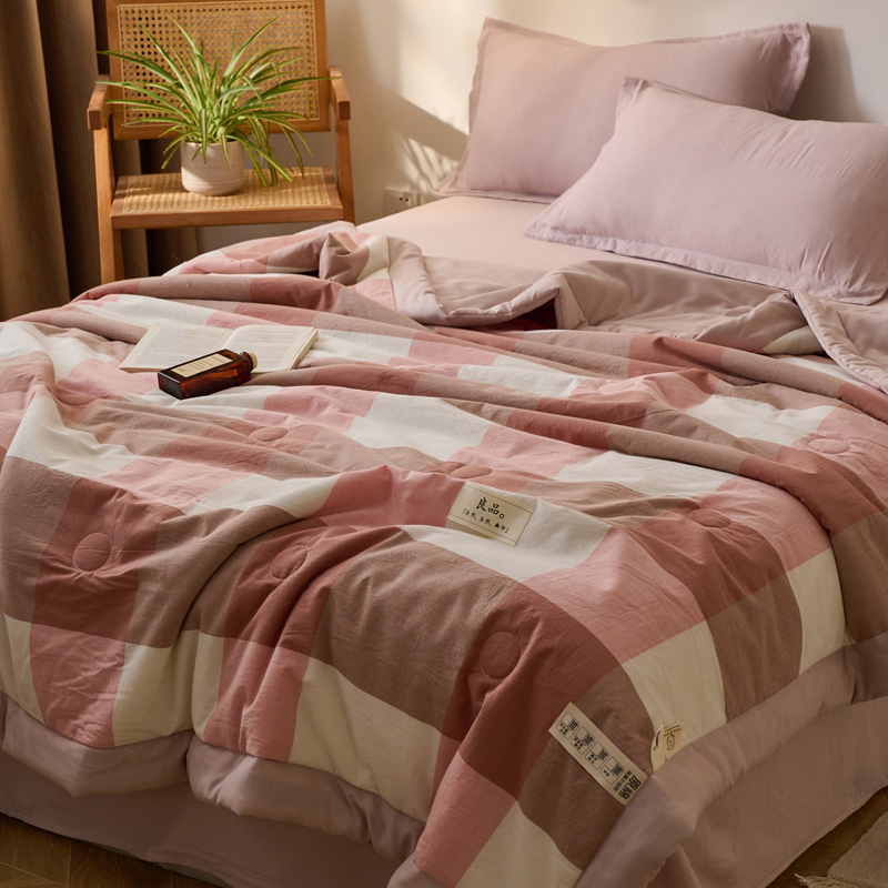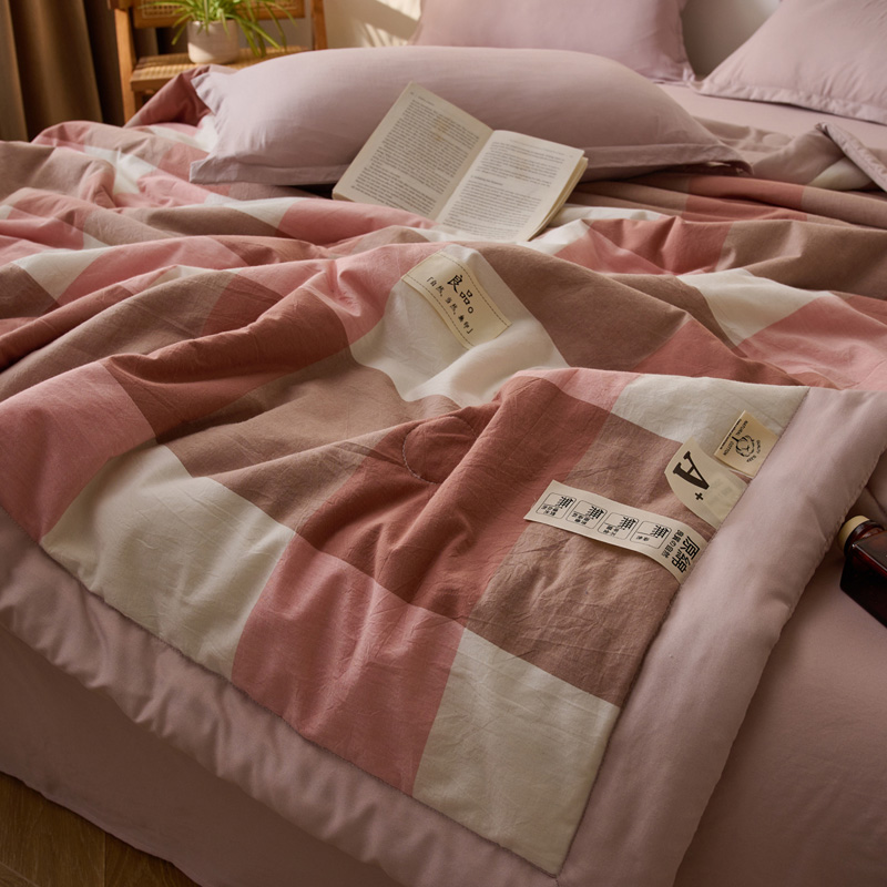 百丽安娜无印风水洗夏被-粉格