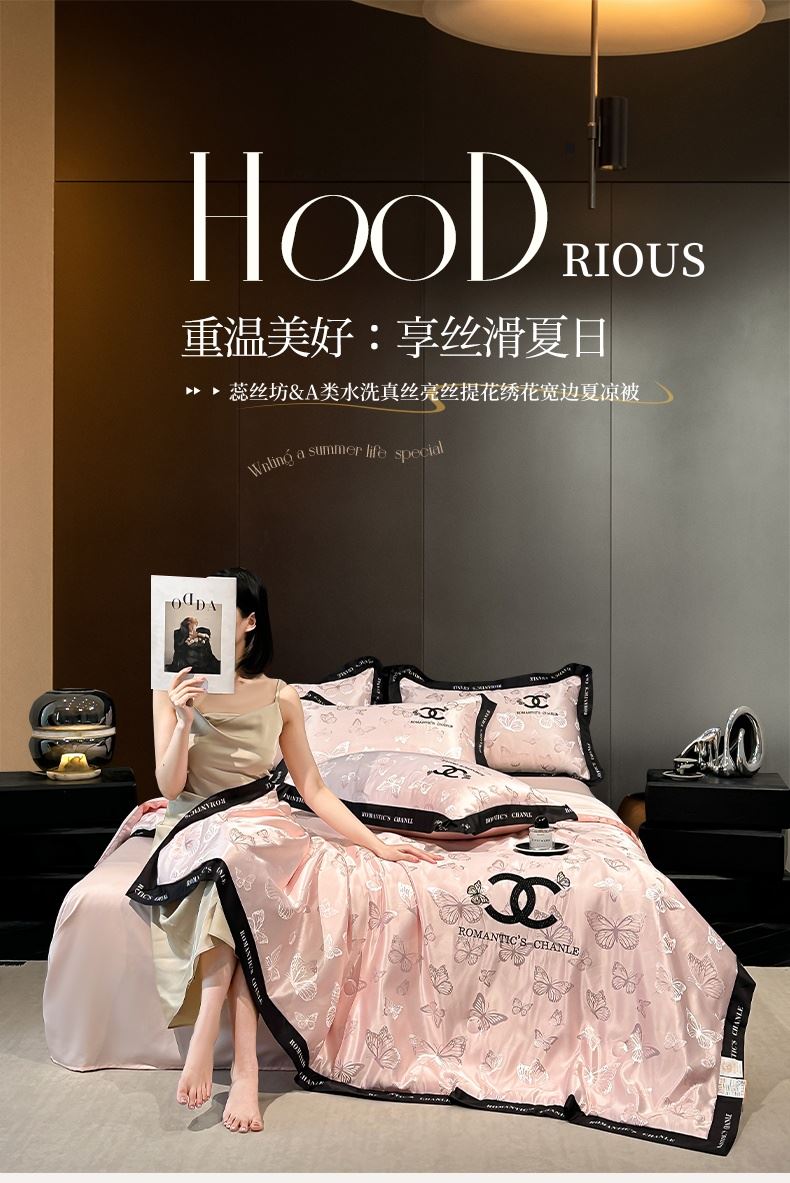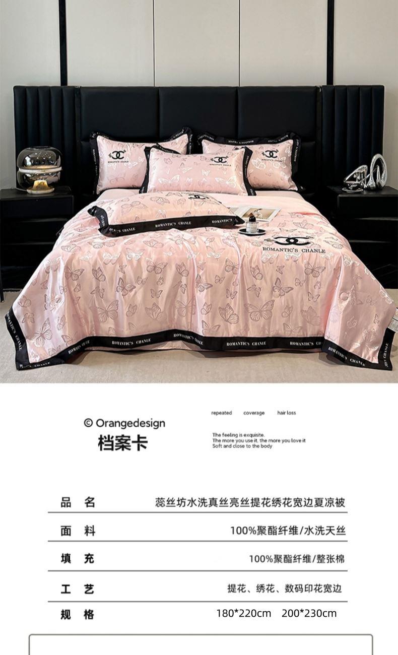 蕊丝坊家纺水洗真丝亮丝提花绣花宽边夏被空调被