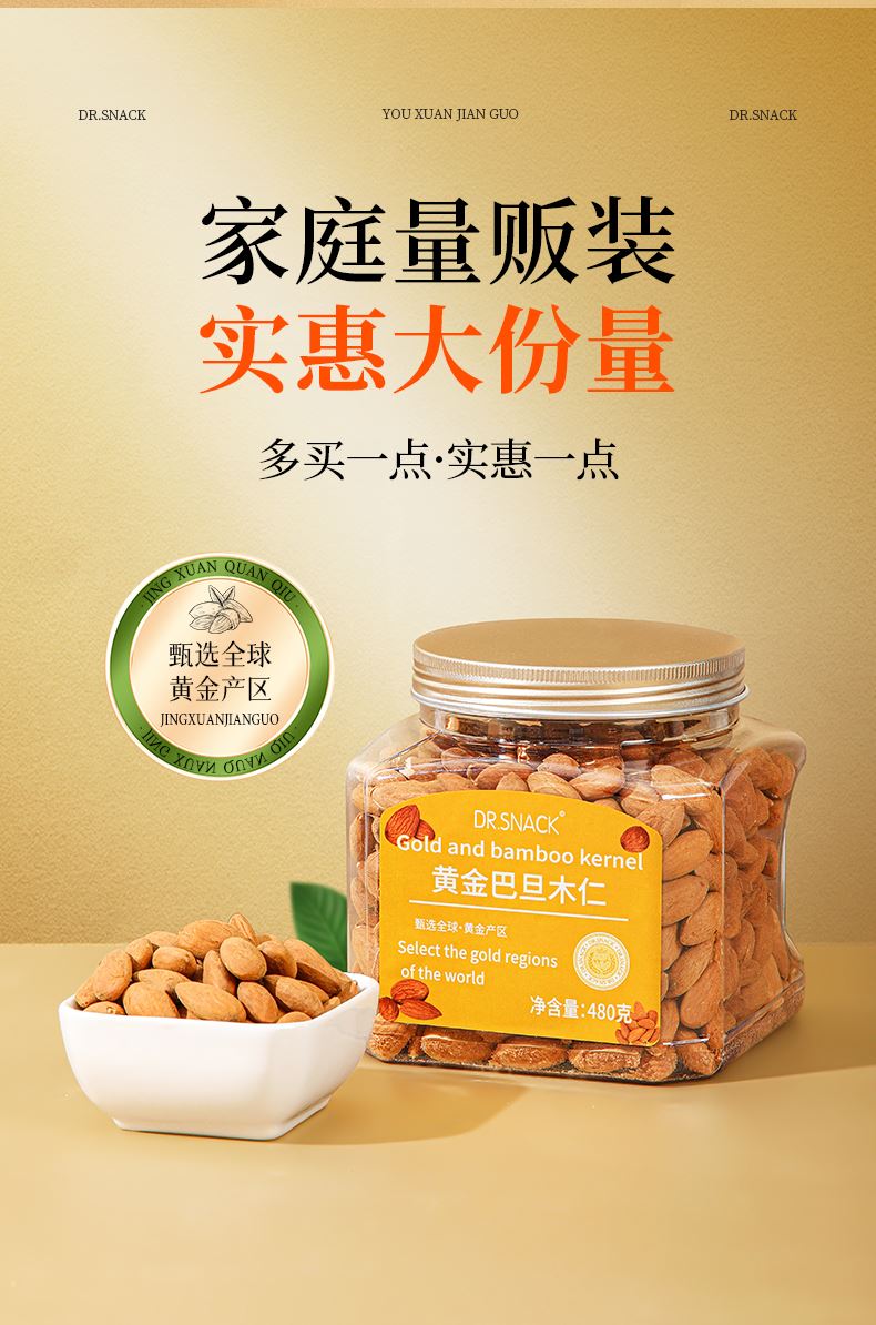 源自原味,口感酥脆,家庭量贩装,实惠大份量,果仁修长,饱满完整,口感酥脆,保留坚果原色原香