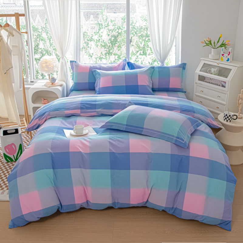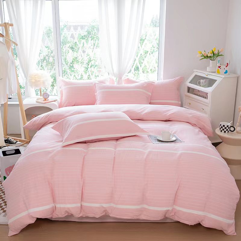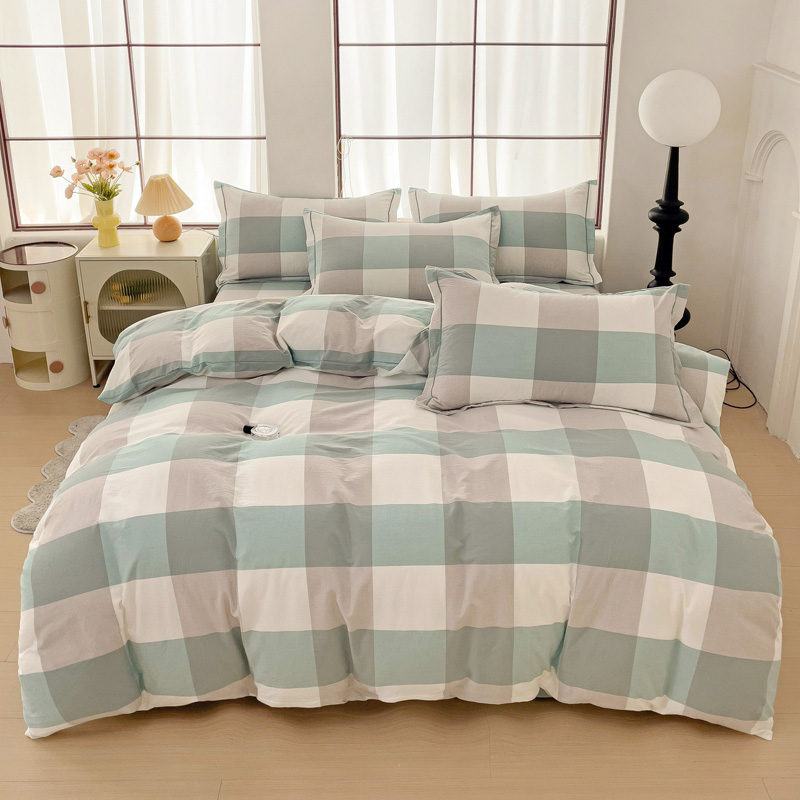 1:全棉织造云端触感 面料软糯细腻,手感顺滑,真正适合裸睡的好面料,感受肌肤与织物的柔软接触 2:精选面料 水洗棉 以棉为原材料经水洗工艺后,使织物表面色调、光泽更加柔和手感更加柔软 3:采用全新印染工艺 高品质活性印染工艺,着色安全,色牢度高,多次洗涤依旧如新,品质好 被套200*230cm*1 床单245*250cm*1 枕套48*74cm*2 面料:色织全棉 包装:彩盒