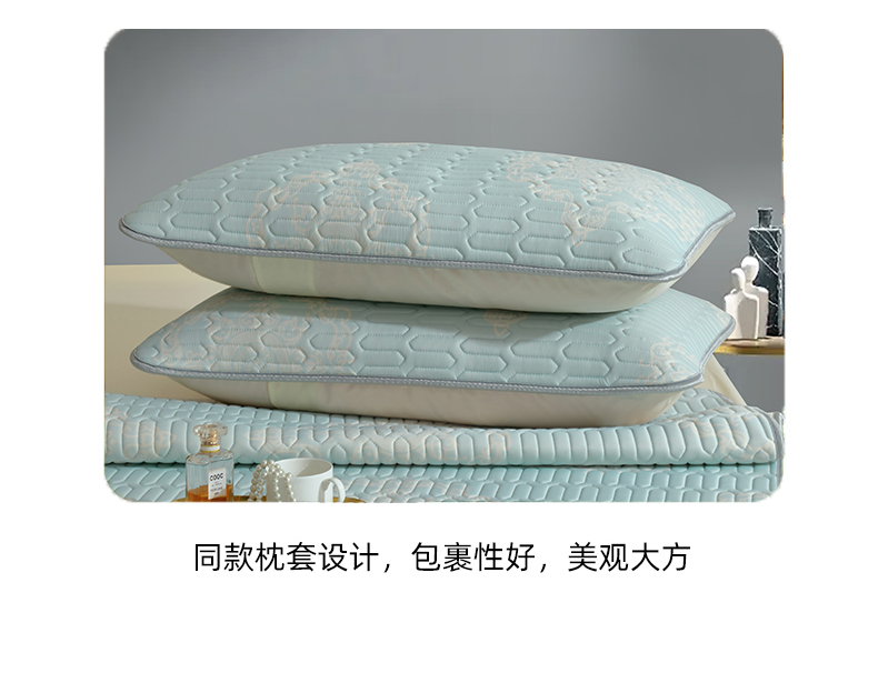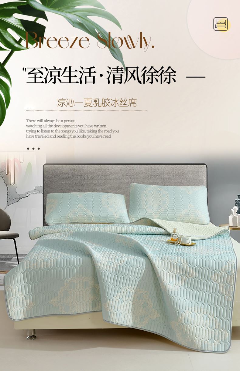 规格:180*200cm 枕套:48*74cm*2 面料:凉感丝 填充:泰国乳胶 执行标准:Q/TDY 01-2016 安全类别:GB18401-2010 B类 1.采用凉感丝面料,科技凉感纤维,内外导热,天生自带凉感,持续凉爽一整夜; 2.填充可以水洗机洗,柔软透气,80000000+透气孔,加倍散热,时刻保持清凉; 3.活性环保印染,A类安全标准,母婴和敏感肌肤即可使用。