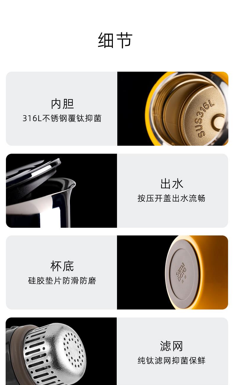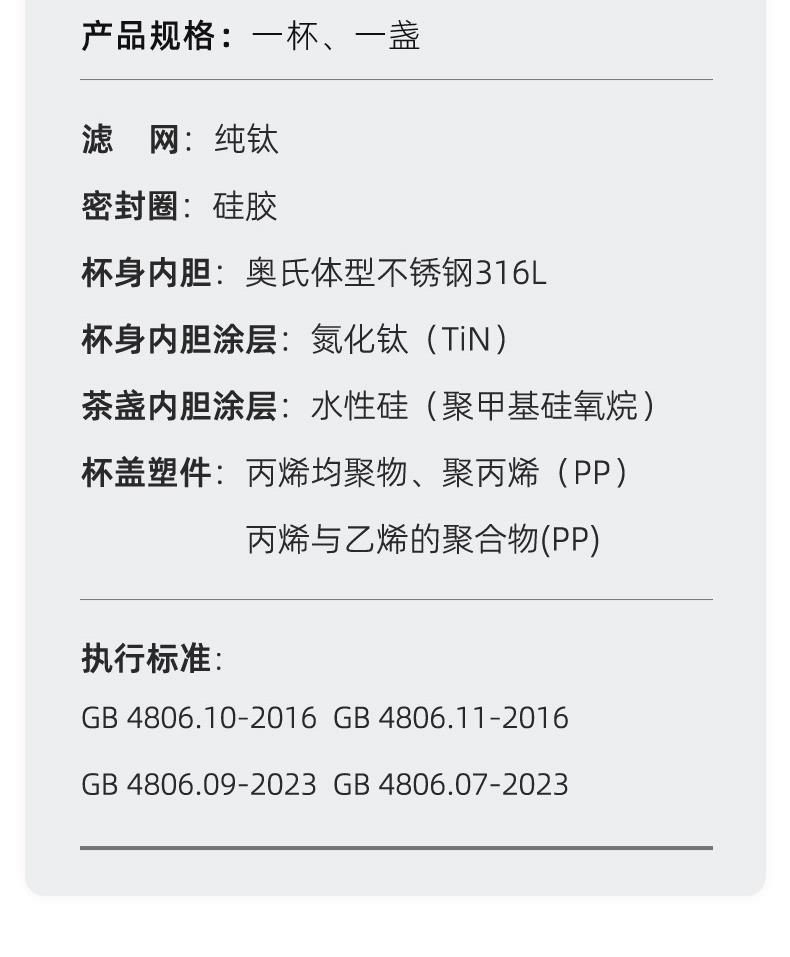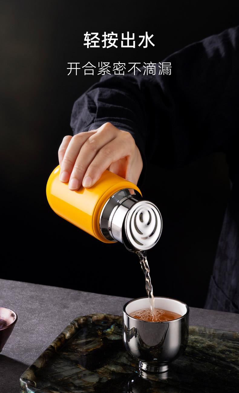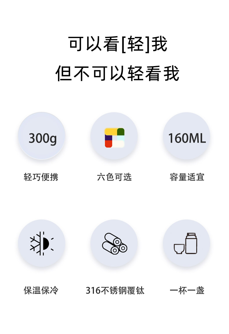 型号:MC03小焖杯 容量:160mL 一杯一盏 双层防烫磁吸盏盖(内壁喷陶涂层) 六层锁温,保温保冷 母婴安全材料 杯身不锈钢内胆覆钛yi菌 按压开盖,钛滤网内塞 防滑硅胶壶底,不易倾倒