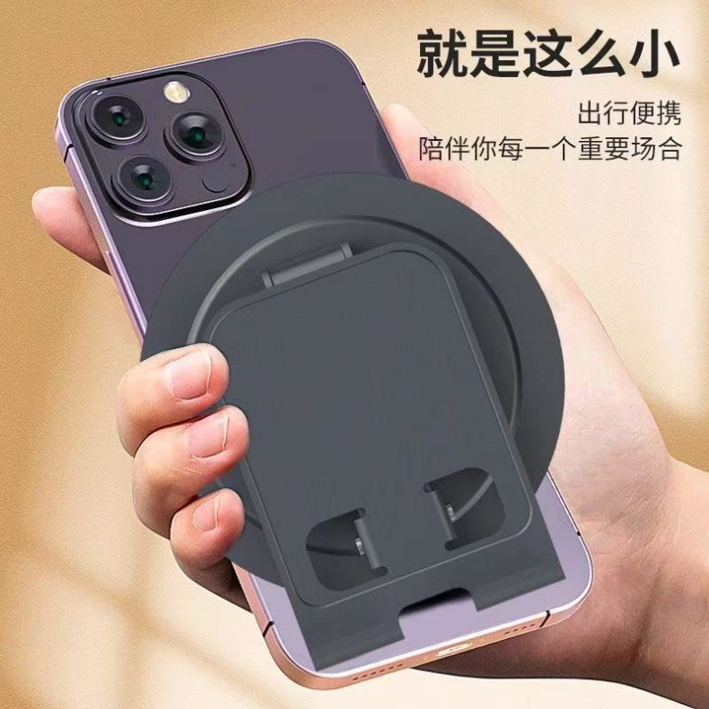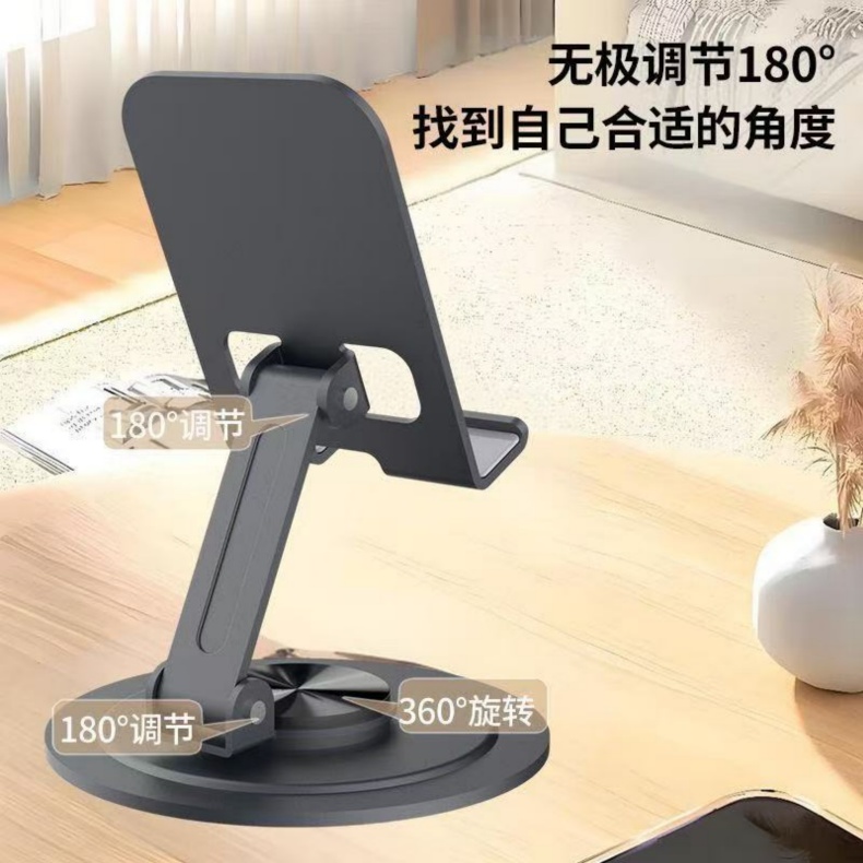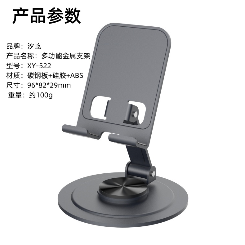 颜色:灰色 材质:碳钢板+硅胶+ABS 尺寸:96*82*29mm 重量:约100g 工艺:氧化喷砂 适用型号:手机,平板等 产品包装尺寸:119*90*34mm(牛皮纸盒包装) 产品卖点:360°旋转,折叠便携,高度可调,自由伸缩,加厚硅胶,加重底座,防止滑动。