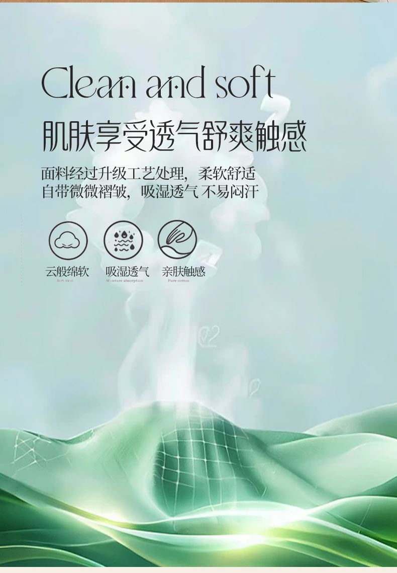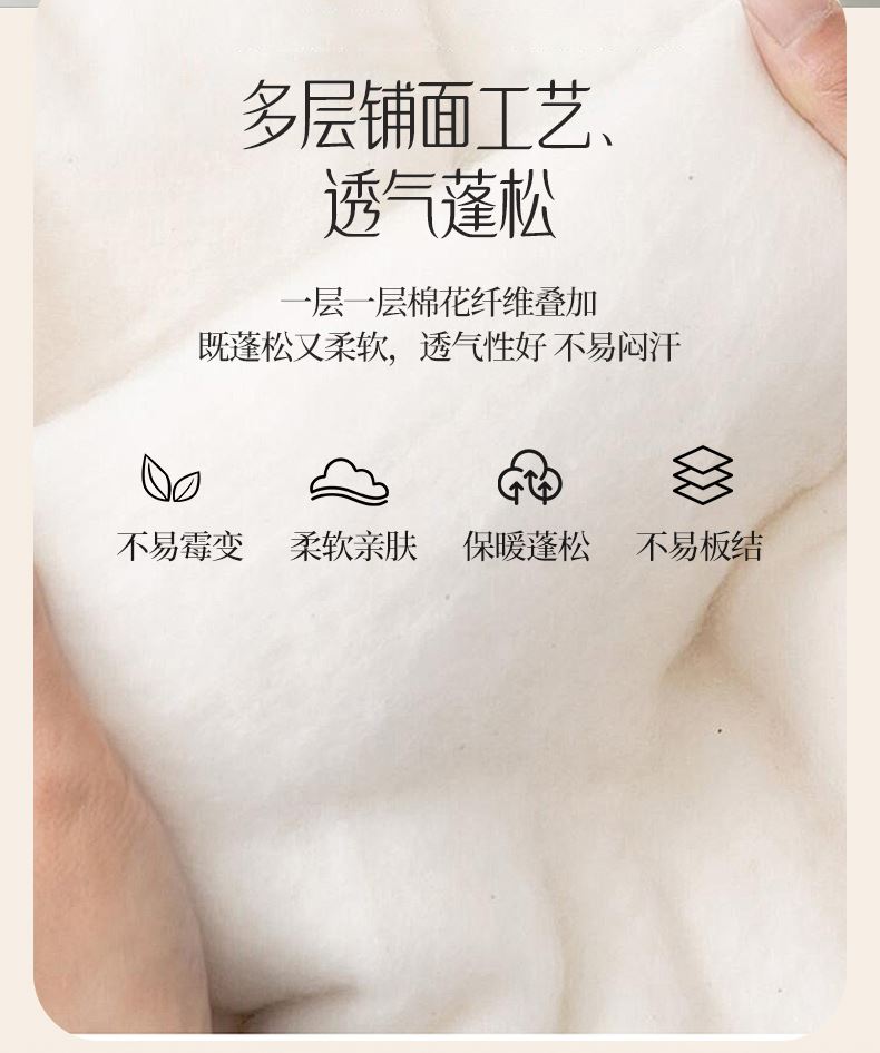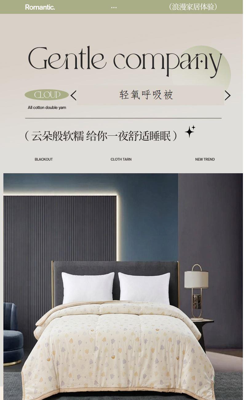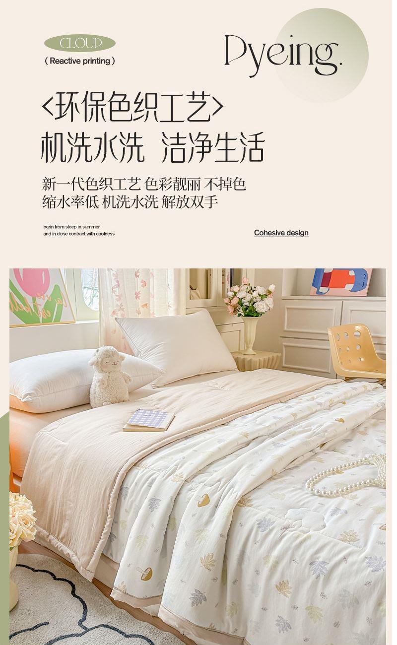 面料材质:水洗棉 填充:新疆棉花 产品规格:180*200cm 克重:1300g 产品特点: 1.水洗棉面料轻薄透气,绵软轻盈,排湿透气。 2.自然的馈赠,采用新疆棉花填充,蓬松柔软,吸湿透气,均匀平整。 3.时尚印花式,经典又有新意,潮流时尚设计,充盈着艺术感绽放于一室的温柔,百搭!