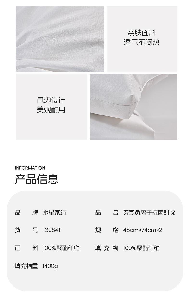 水星家纺芬梦负离子对枕48cm*74cm*2