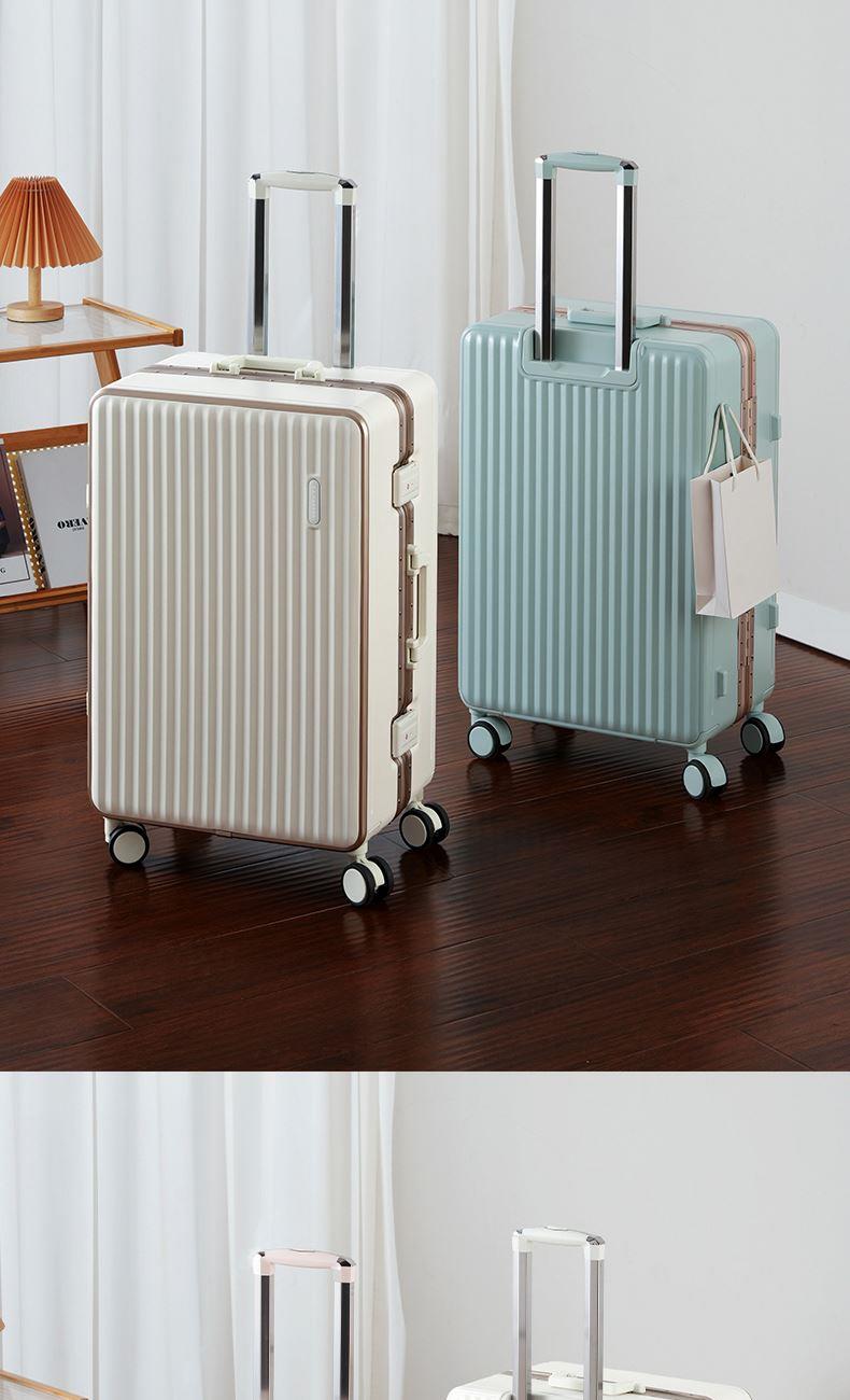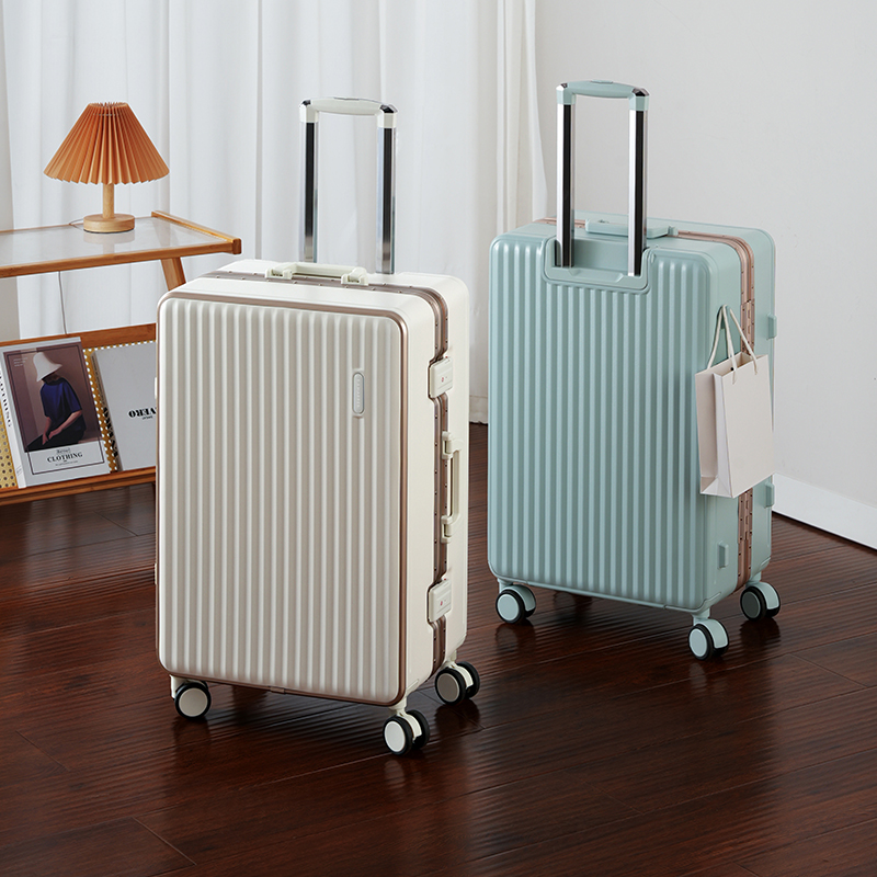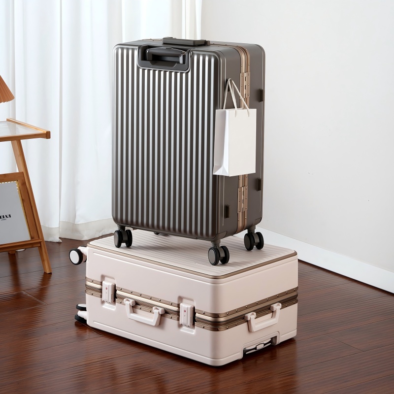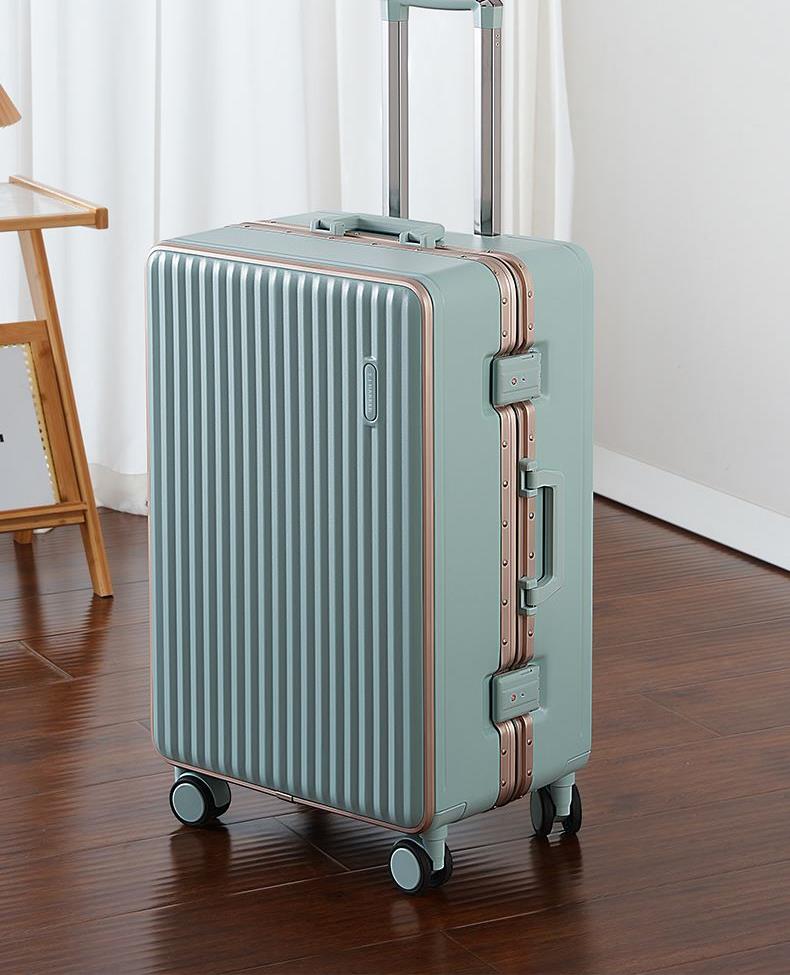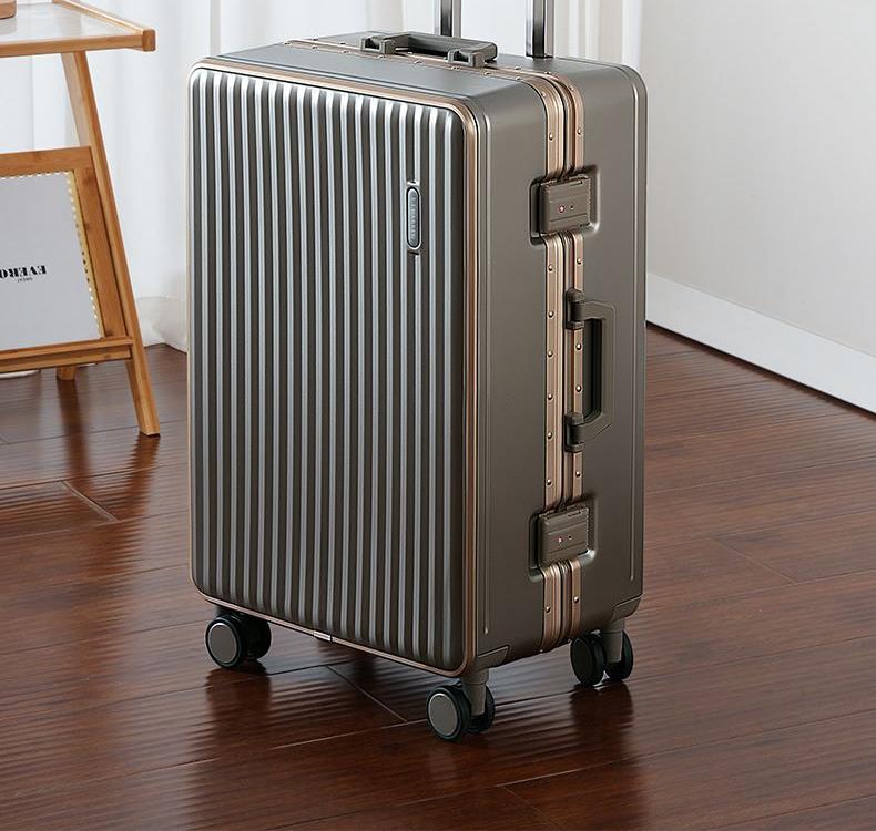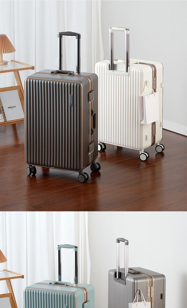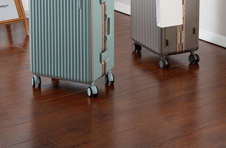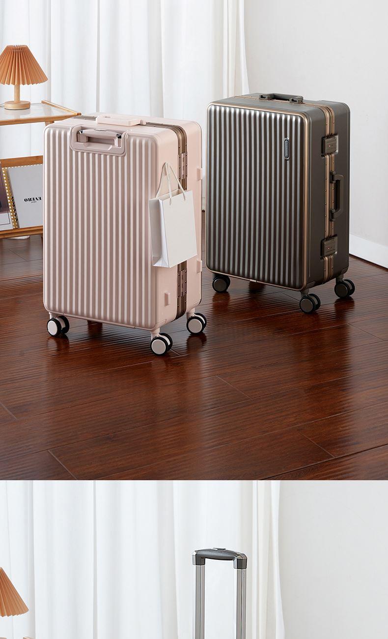 型号:TJ2013 规格:20英寸 材质:PC复合料 里料:涤纶 颜色:矿金色/白色/粉色/蓝色 等级:一等合格品 执行标准:QB/T 2155-2018 产品特点: 1、加厚PC合金外壳及铝框和合页,防刮坚固,耐磨防爆;2、加厚合金伸缩拉杆,拉合顺畅,握感舒适,结实稳固;3、带慢回弹顶部和侧部提手,竖提横提都方便;4、侧部顶脚防剐蹭,同时带方便行李挂架功能;5、内大双网结构,干湿分离,分区合理;6、双嵌入式三码密码锁,安全性高,放心旅行;7、带挡泥板TPE万向静音飞机轮,高承重,肆意而行;8、撞色金属条配饰,美观大方,时尚有质感。