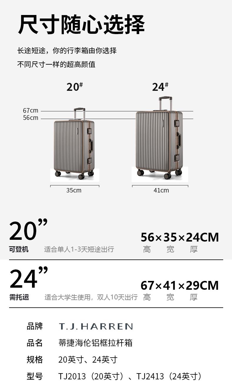 T.J.HARREN/蒂捷海伦铝框拉杆箱20英寸TJ2013 礼品已成功加入PPT!