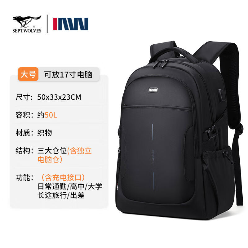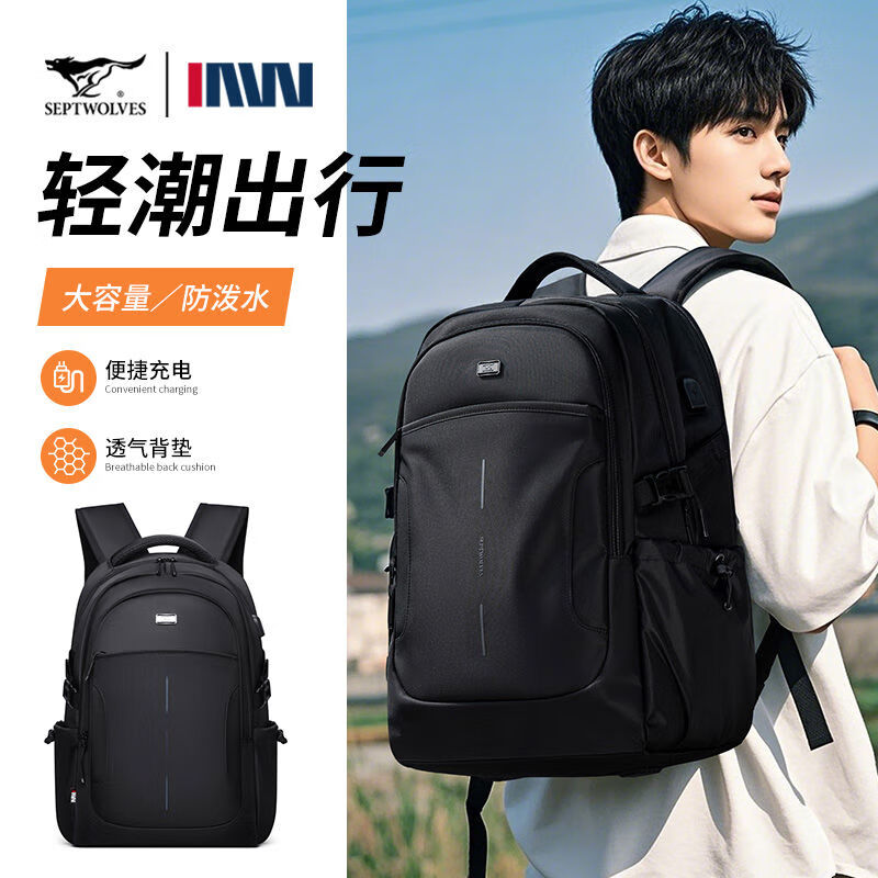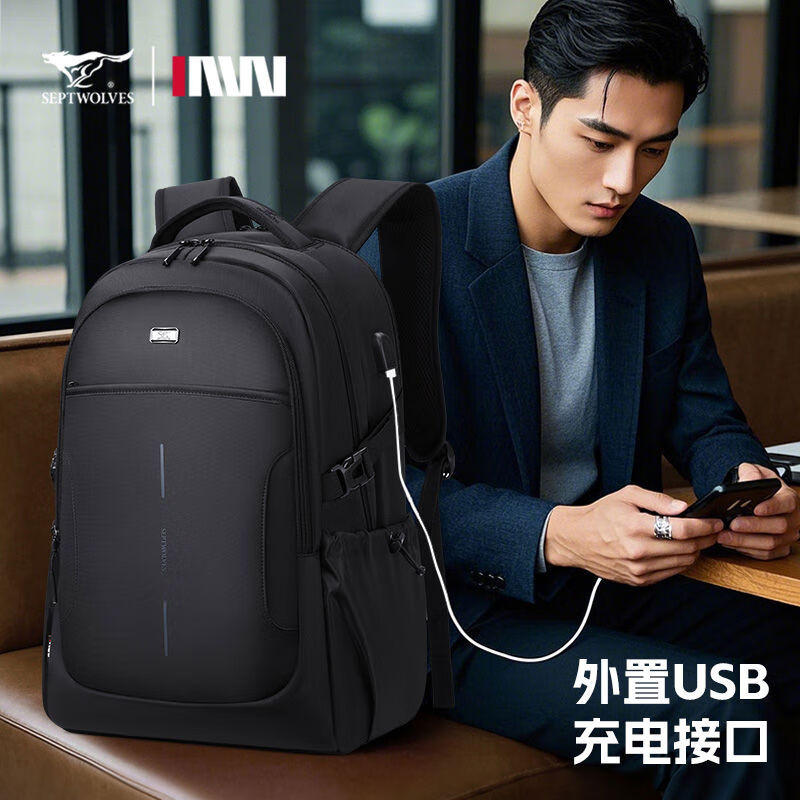 七匹狼双肩包男士大容量商务通勤旅行CD141636-2