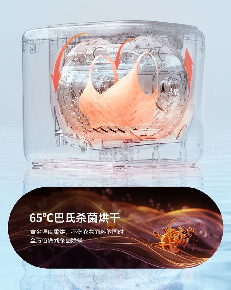 开放内仓0硅胶,拒绝藏污纳垢 悬浮滚筒洗衣更干净 65C巴氏烘干,黄金温度柔烘 上进水、下排水,活水洗涤更干净 拥有超大开孔轻松过滤毛絮,内壁不存毛