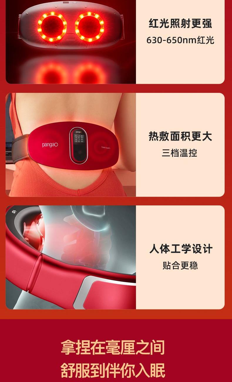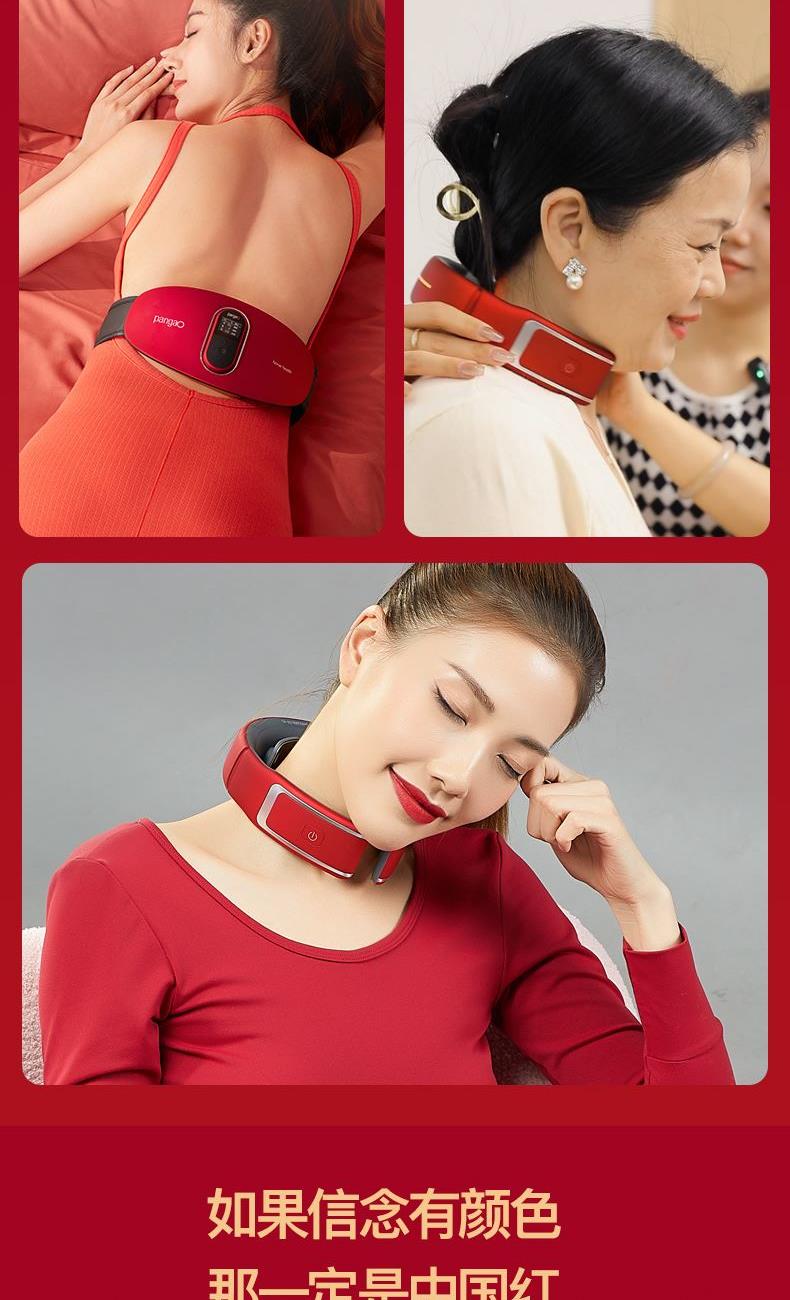 产品材质:ABS料,电子元器件等 电压功率:5V DC 1.0A(USB电源) / 5W 电池容量:锂电池 DC 7.4V 2200mAh 按摩档位: 3档 按摩头:4个 控制方式:按键 颈椎按摩仪中低频双脉冲变频技术,双脉冲按摩+三档热敷+遥控操作,腰腹部按摩仪多部位电极片+红光+双脉冲+热敷,红色豪华礼盒套装,优选好礼,礼赠渠道爆款
