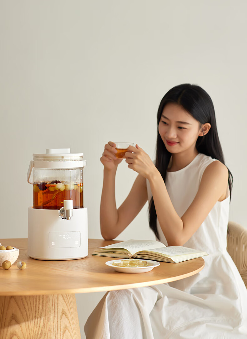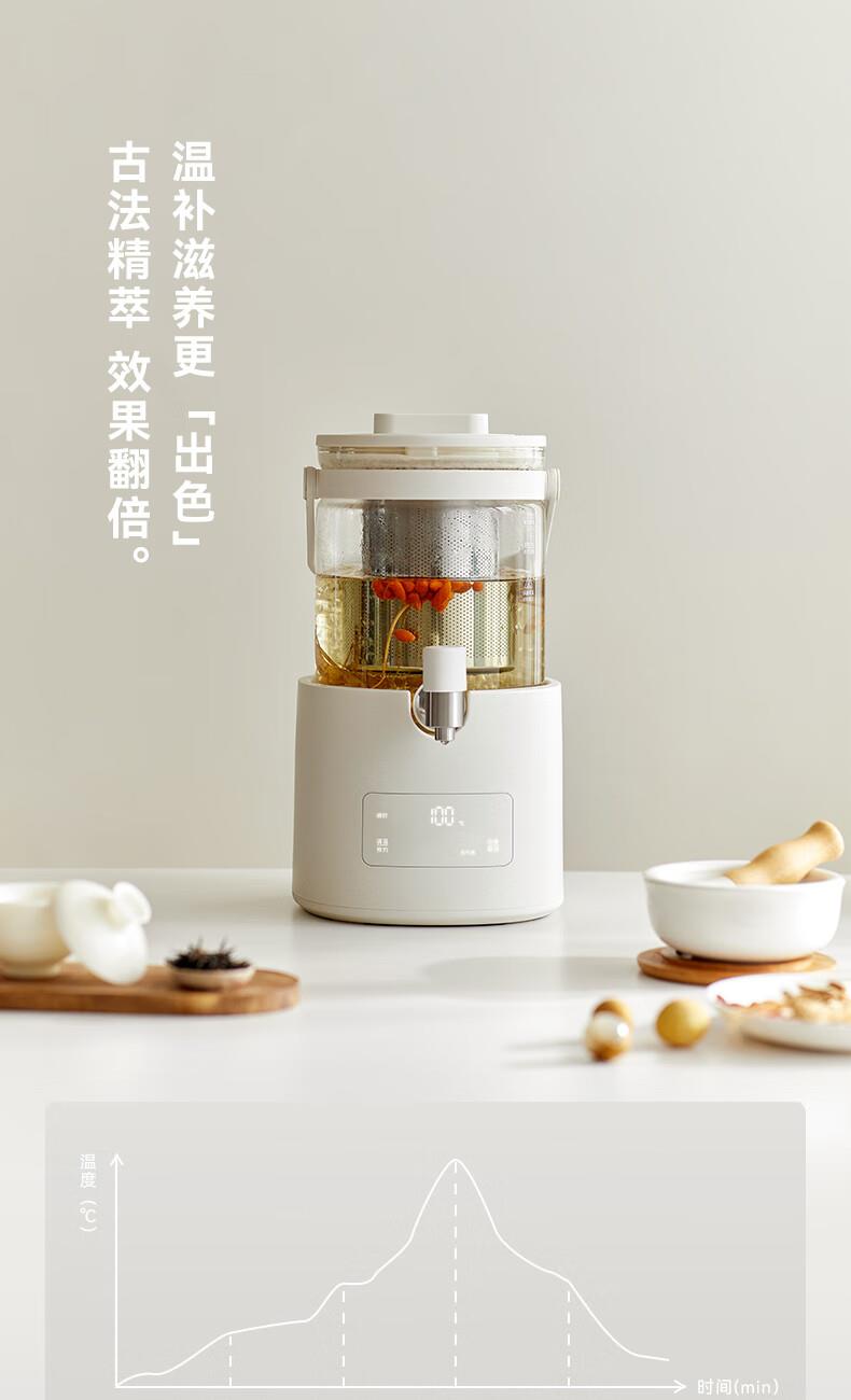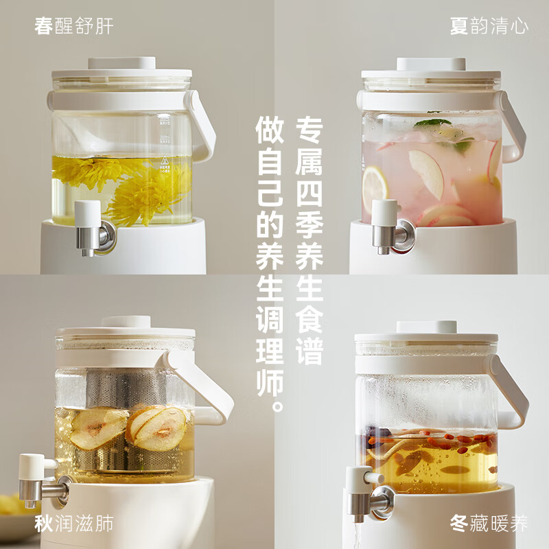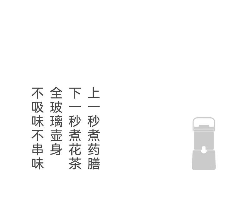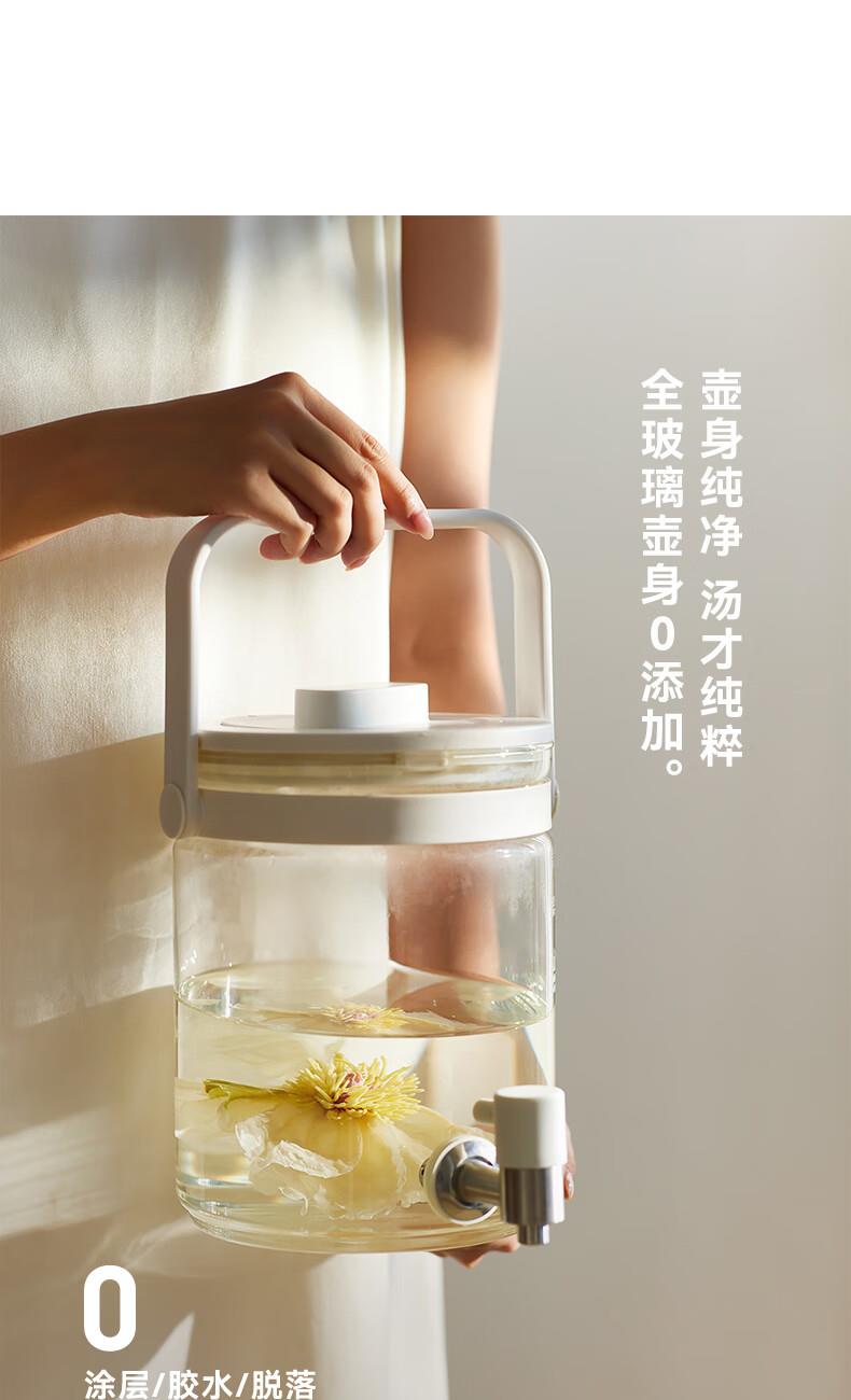 颜色:陶白色 重量:3.5kg 容量:2.8L 额定功率:1000W 产品尺寸:187*203*340mm 包装尺寸:442*250*259mm 条码 : 6977735713120 1. 0涂层全玻璃,无缝一体式壶身 2. 104mmMAX加大304不锈钢滤网 3. 盖中盖设计,中途加料更方便 4. 1.8mm加厚高硼硅玻璃 5. 分体式设计,免提取水 ,一拧即出 6. 35-85°C 11段调温,24H持久保温