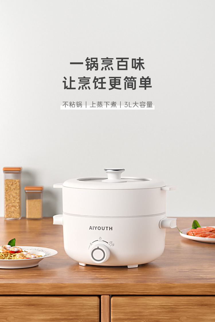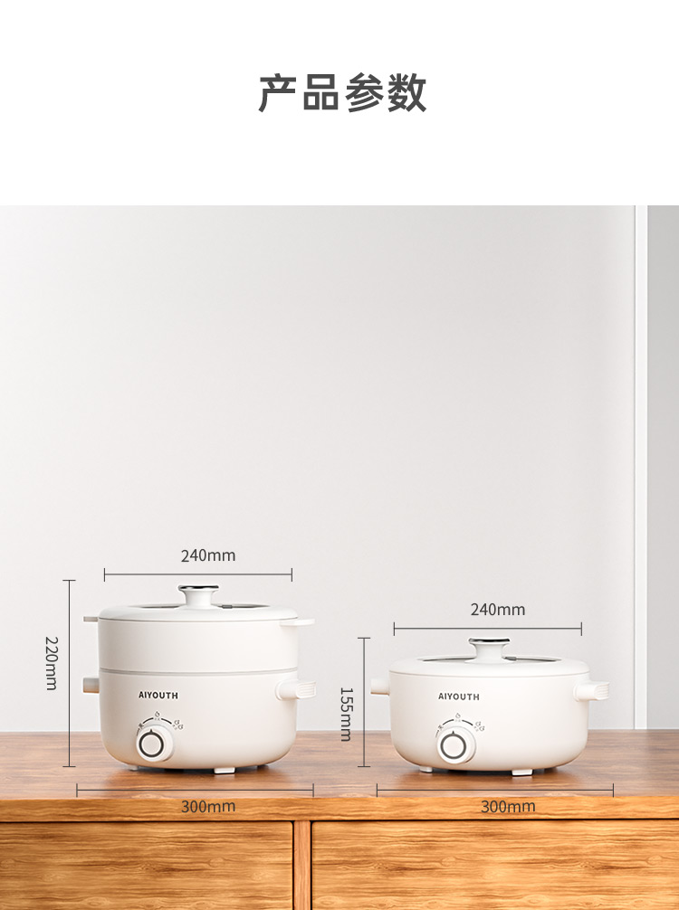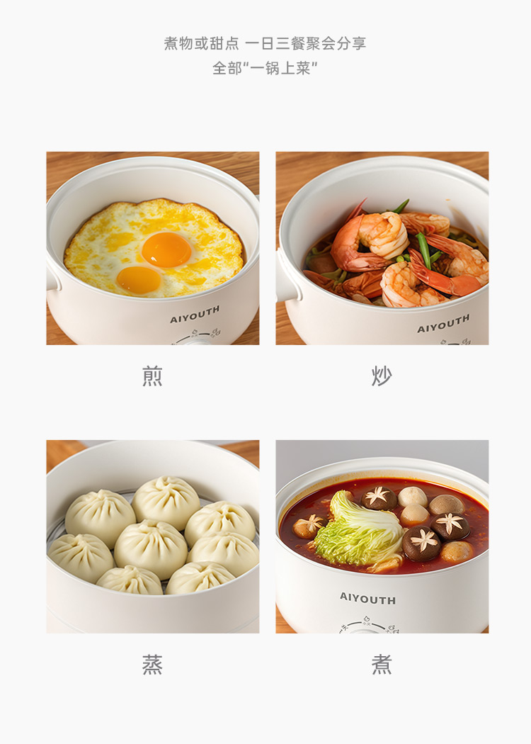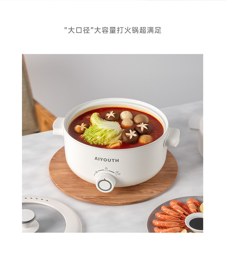 6.大口径大容量,轻松实现火锅、煎、煮、炸、蒸多种烹饪方式