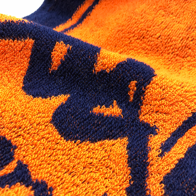 材质:全棉提花 尺寸:100*25cm 重量:122g BANDA系列运动巾特点,采用独特工艺,使图案更清晰更立体,市场独有。人形部分采用股线编织,底纱采用单纱,边缘更清晰。