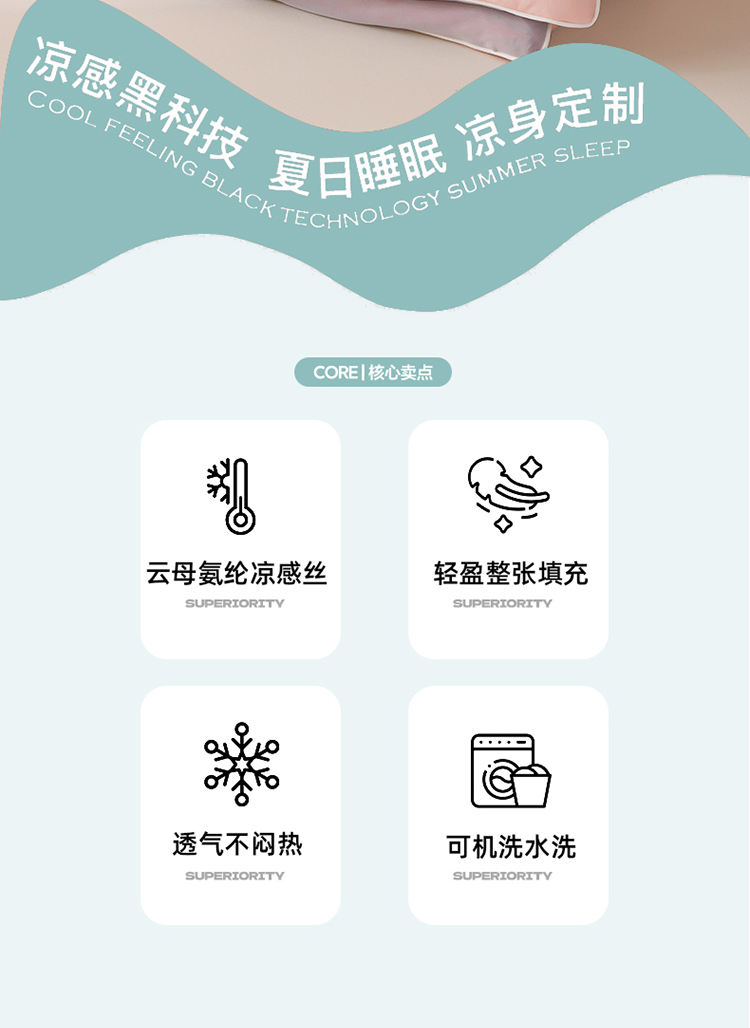 1:清凉夏日体验清凉触感 (云母氨纶凉感丝夏凉被) 2:云母凉感面料体感清凉触感软糯排湿透气会呼吸的睡眠环境 3:*Q-MAX:为衡量皮肤接触面料将皮肤上的热量转移到低温处的性能 数值越大表示越有凉感 尺寸:180x220cm单夏被 重量:1.35kg(净重) 包装:彩盒/礼袋
