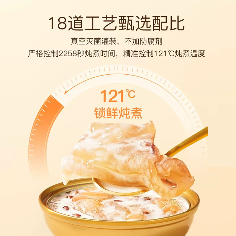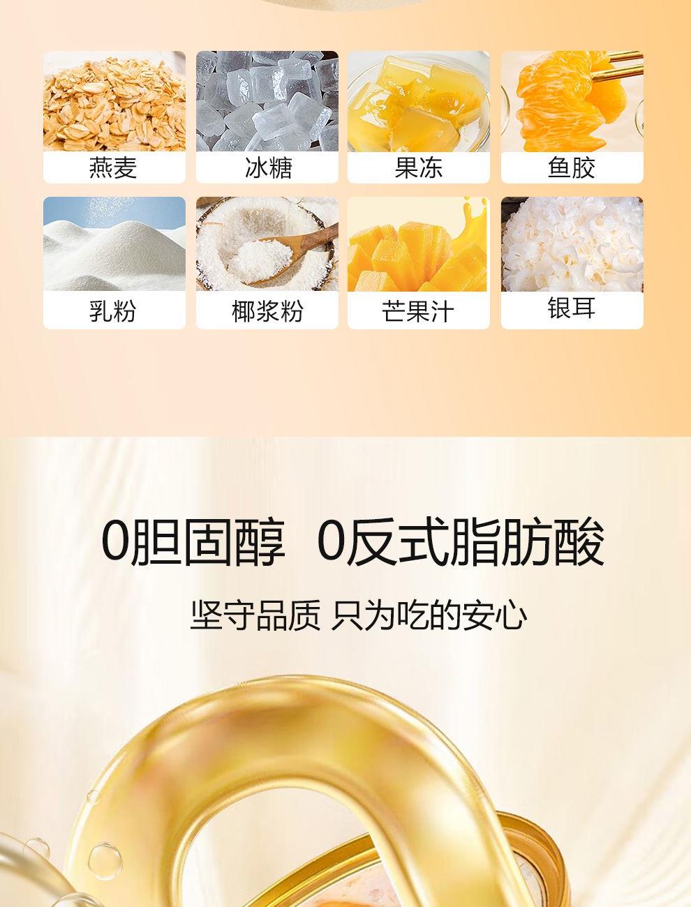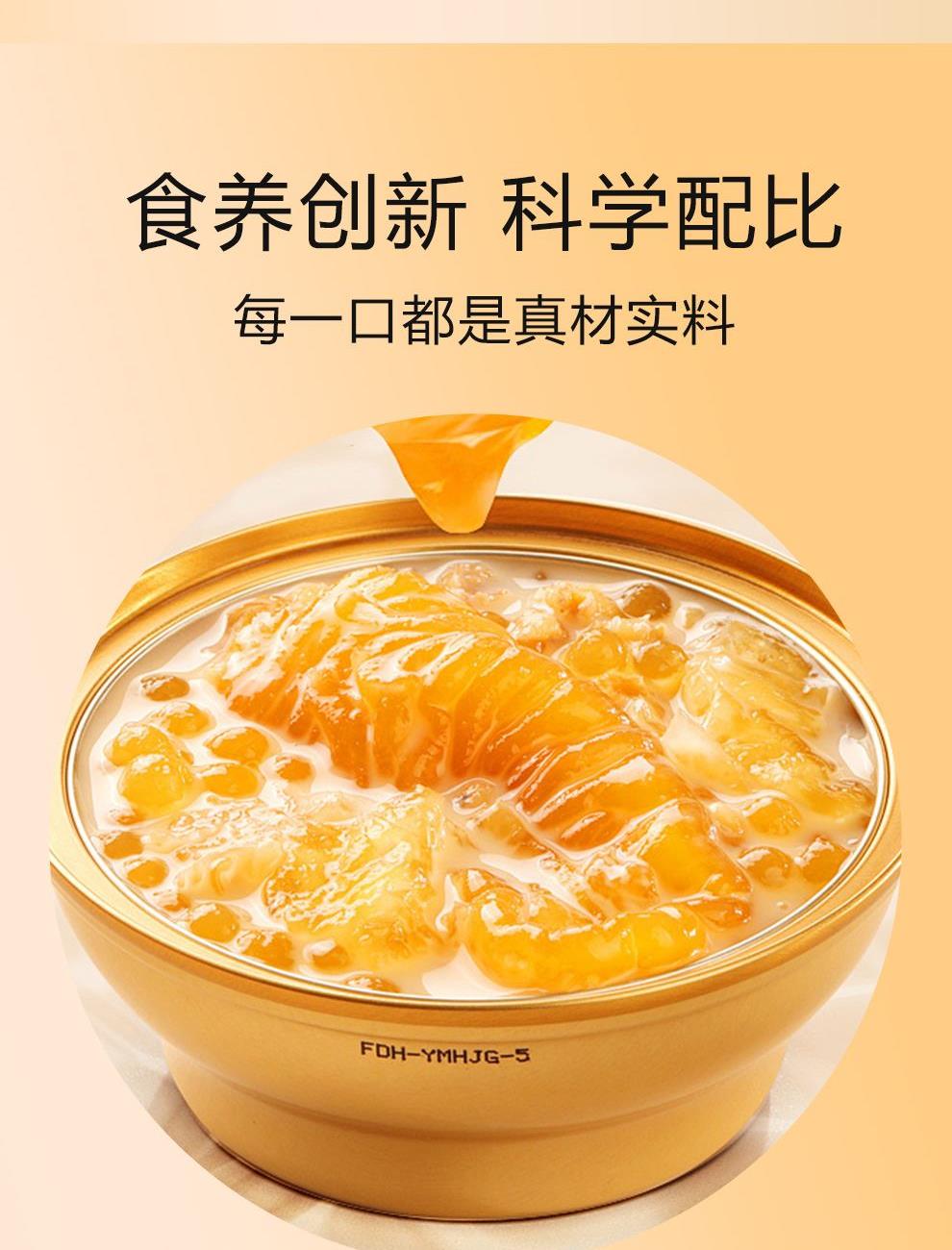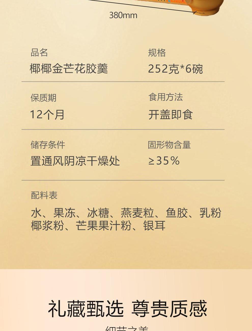 规格:1512克(252克*6碗)、固形物含量≥35% 卖点:我们坚持严选全球优质原料,只为打造这份美味。花胶,取自深海大鱼,肉质厚实,富含满满胶原蛋白,每一口都是对肌肤的温柔呵护,是天然的美容圣品。搭配来自热带果园的新鲜芒果,金黄果肉散发着浓郁果香,甜润多汁,为花胶羹注入自然的甜蜜。再融入醇厚椰浆,精选自阳光椰林的椰子,椰香馥郁,口感丝滑,将热带风情浓缩其中,让您足不出户,就能领略一场舌尖上的海岛之旅。