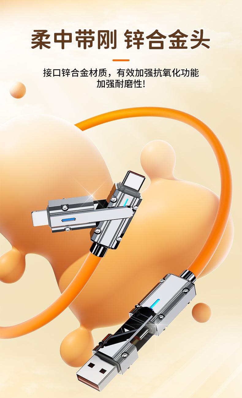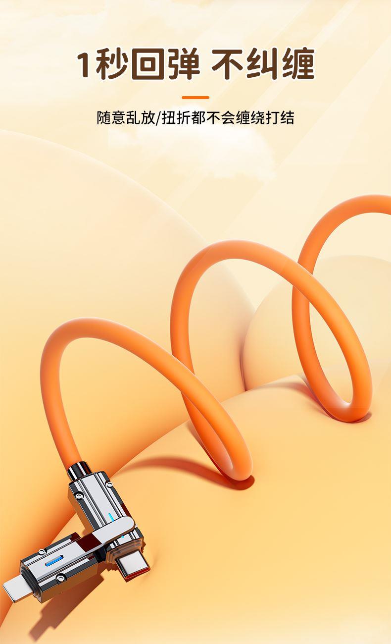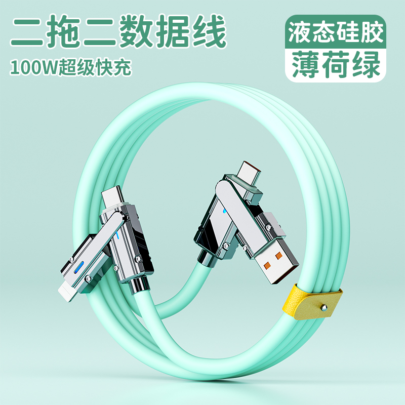 奥苏米S6C二拖二100W快充硅胶数据线 颜色:绿色 紫色 黑色 粉色 白色 橙色 天空蓝 材质:锌合金+硅胶+挂镀 尺寸:1M 包装:彩盒包装 【功能特点】: A/C口二拖二设计,兼容苹果15系列 100W超级快充,可充笔记本电脑 165支08纯铜 五芯快充 27W液态硅胶线,一体成型充电头 1米长度设计,使用方便 C-C 66W / C-L27W 亲肤手感,丝滑柔顺不打结