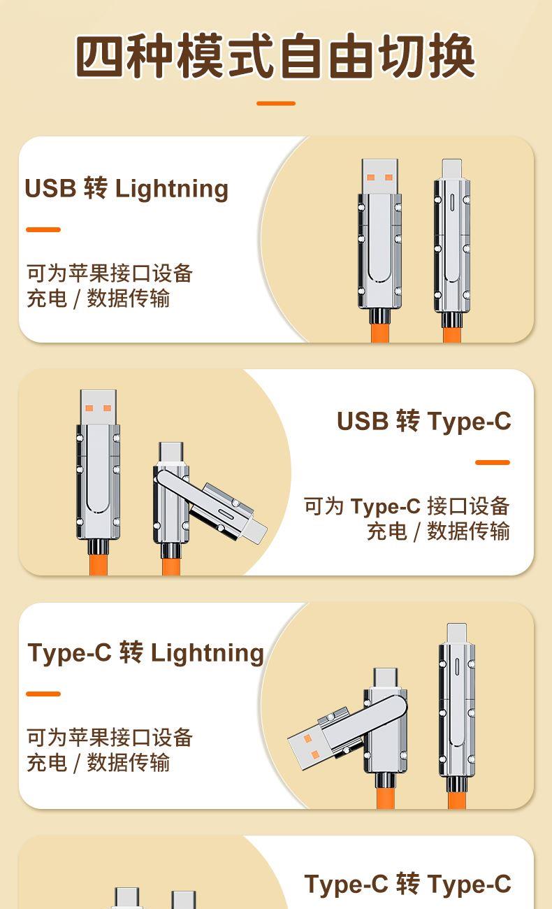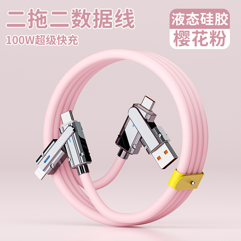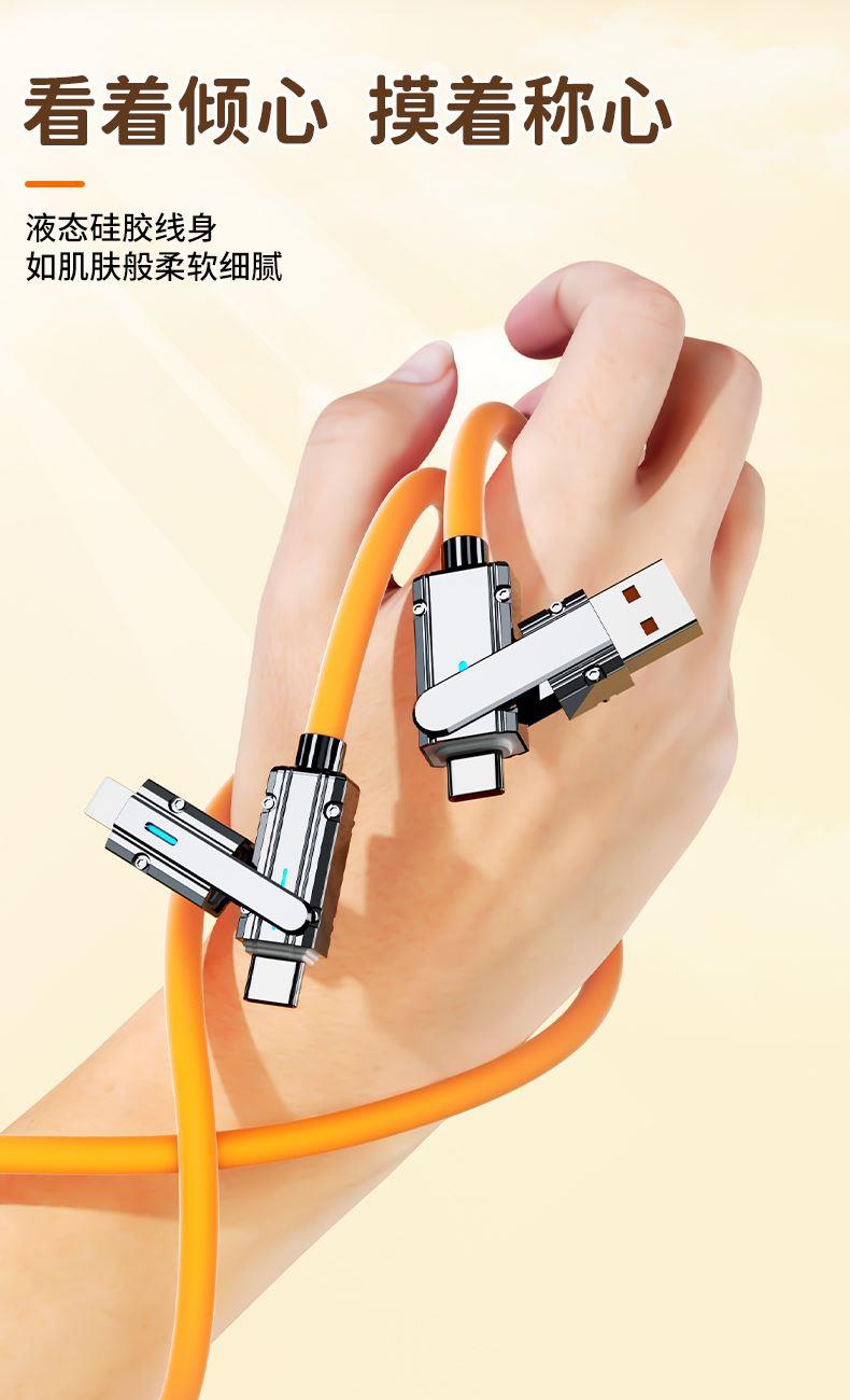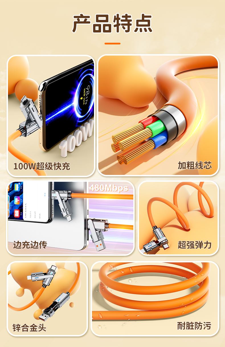 奥苏米S6C二拖二100W快充硅胶数据线 颜色:绿色 紫色 黑色 粉色 白色 橙色 天空蓝 材质:锌合金+硅胶+挂镀 尺寸:1M 包装:彩盒包装 【功能特点】: A/C口二拖二设计,兼容苹果15系列 100W超级快充,可充笔记本电脑 165支08纯铜 五芯快充 27W液态硅胶线,一体成型充电头 1米长度设计,使用方便 C-C 66W / C-L27W 亲肤手感,丝滑柔顺不打结